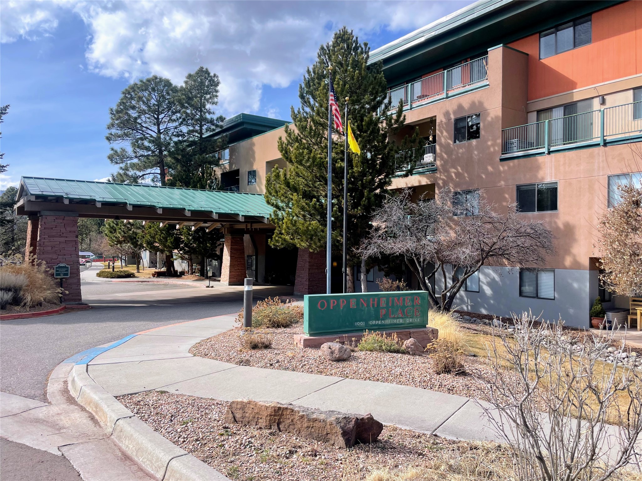 Don't miss this condo at Oppenheimer Place, a welcoming 55+ community designed for modern senior living. Located on the ground floor and at the end of a quiet hallway, this residence offers added privacy and a peaceful balcony overlooking the pines. Its conveniently location near the main lobby provides easy access to elevators, fitness rooms, patios, parking, and recreation areas. The spacious primary bedroom features a comfortable three-quarter bath and a large walk-in closet. Community amenities include multiple entertainment spaces, a commercial kitchen, outdoor gathering areas, and secure underground parking. The unit includes one dedicated parking space, with additional parking and a storage unit available for rent. An optional pet fee applies. Ideally situated near downtown, this condo offers quick access to the Los Alamos Senior Center, Mesa Public Library, Los Alamos Aquatic Center, Fuller Lodge, and Ashley Pond, along with nearby coffee shops, restaurants, shopping, and open space. This is a rare opportunity to enjoy comfortable, low-maintenance living in one of the area's most desirable senior communities.