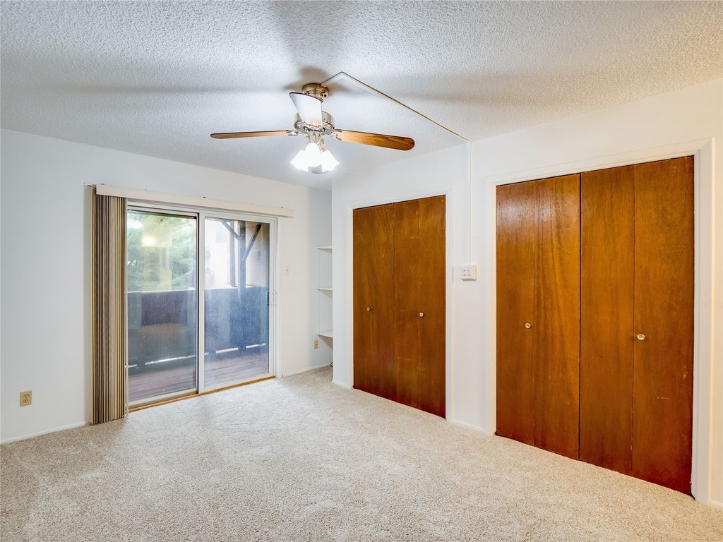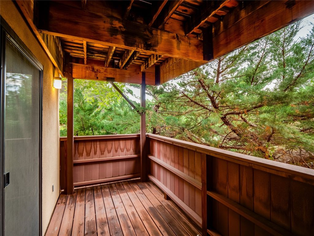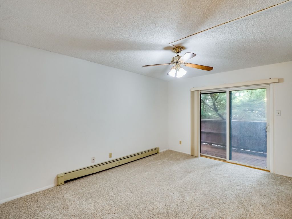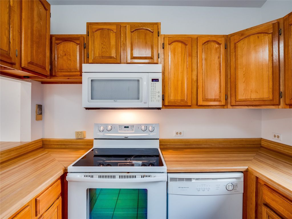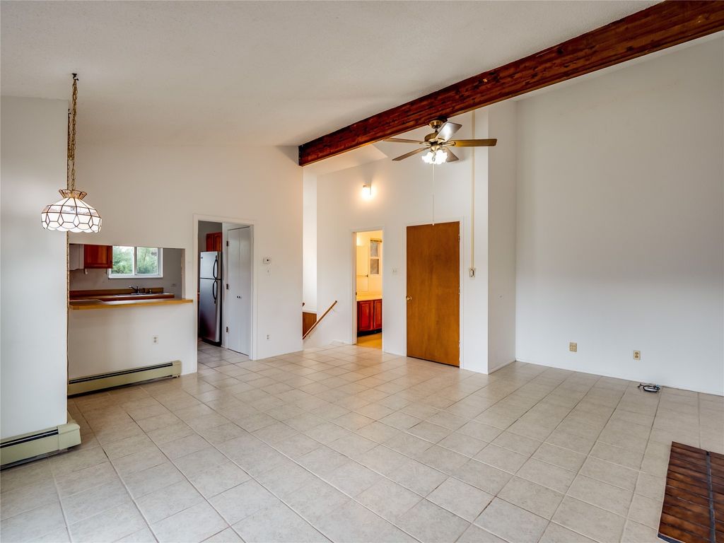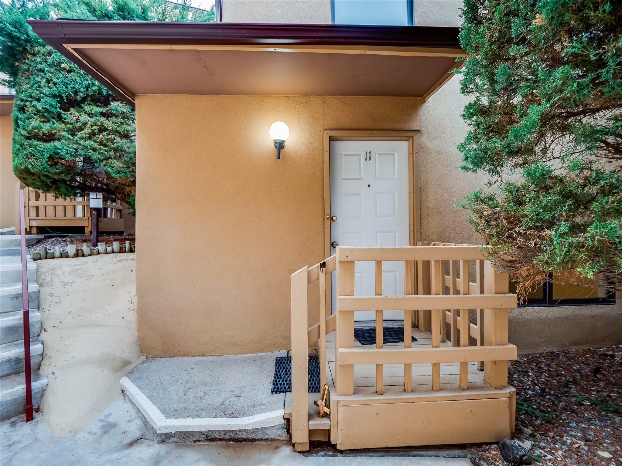 Welcome to this charming two-story condo located in the desirable Eastern area, offering comfort, functionality, and inviting spaces both indoors and out. Step through the front entrance and head upstairs to the main living level, where natural light fills the open-concept living and dining area. Vaulted ceilings and tile flooring create a bright, airy atmosphere, while the centerpiece wood-burning fireplace adds warmth and character. Sliding glass doors lead to a spacious wood deck with stunning mountain views - perfect for outdoor lounging, morning coffee, or summer BBQs. The kitchen is conveniently connected to the dining space, featuring wood cabinetry, a stainless steel refrigerator, a pantry, and a peninsula counter with a pass-through window for easy serving and conversation. Also on this level is a generous powder room, complete with a long vanity and single sink. Downstairs, brand-new plush carpet adds comfort throughout. This level includes a spacious guest bedroom and a private primary en-suite. The primary retreat boasts a large bedroom with double closets and access to a secluded deck - an ideal spot for unwinding at the end of the day. A shared full bathroom offers a tiled shower/tub and a single-sink vanity. For added convenience, a laundry closet with included washer and dryer, along with a deep storage closet, completes the lower level. This property also comes with a detached one-car garage, providing covered parking and extra storage space. Set in a quiet location close to parks, trails, shopping, and entertainment, this condo provides the perfect combination of peaceful living and everyday convenience. Don't miss the opportunity to make this inviting property yours - schedule a tour today!