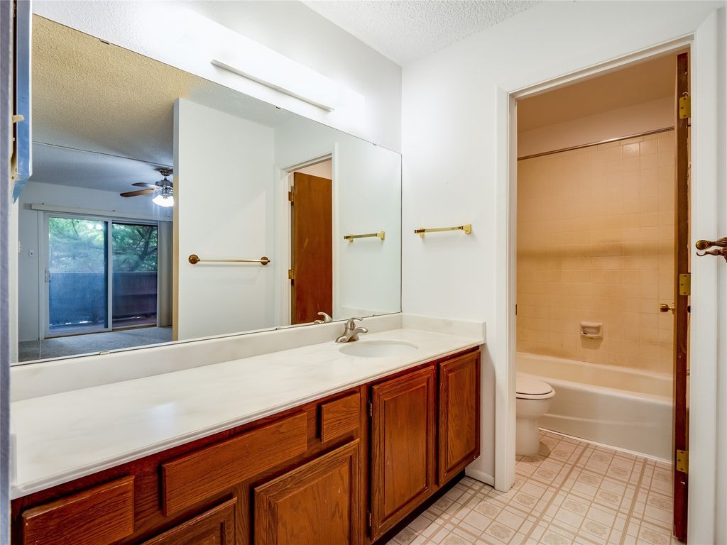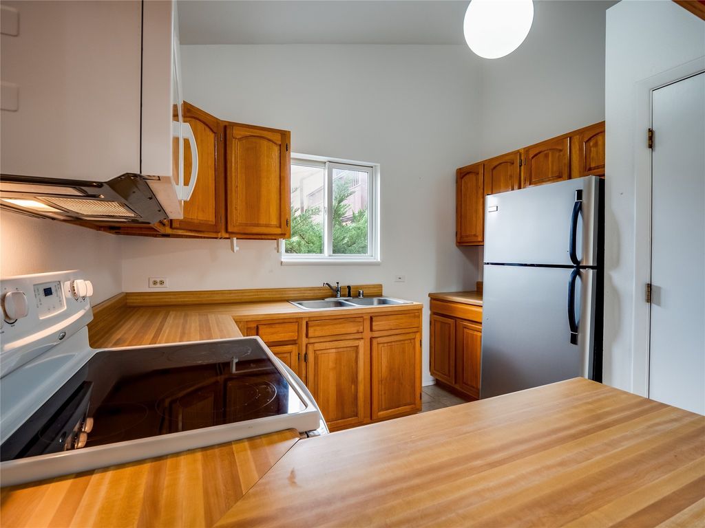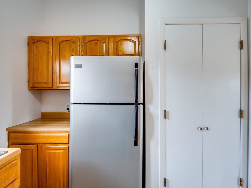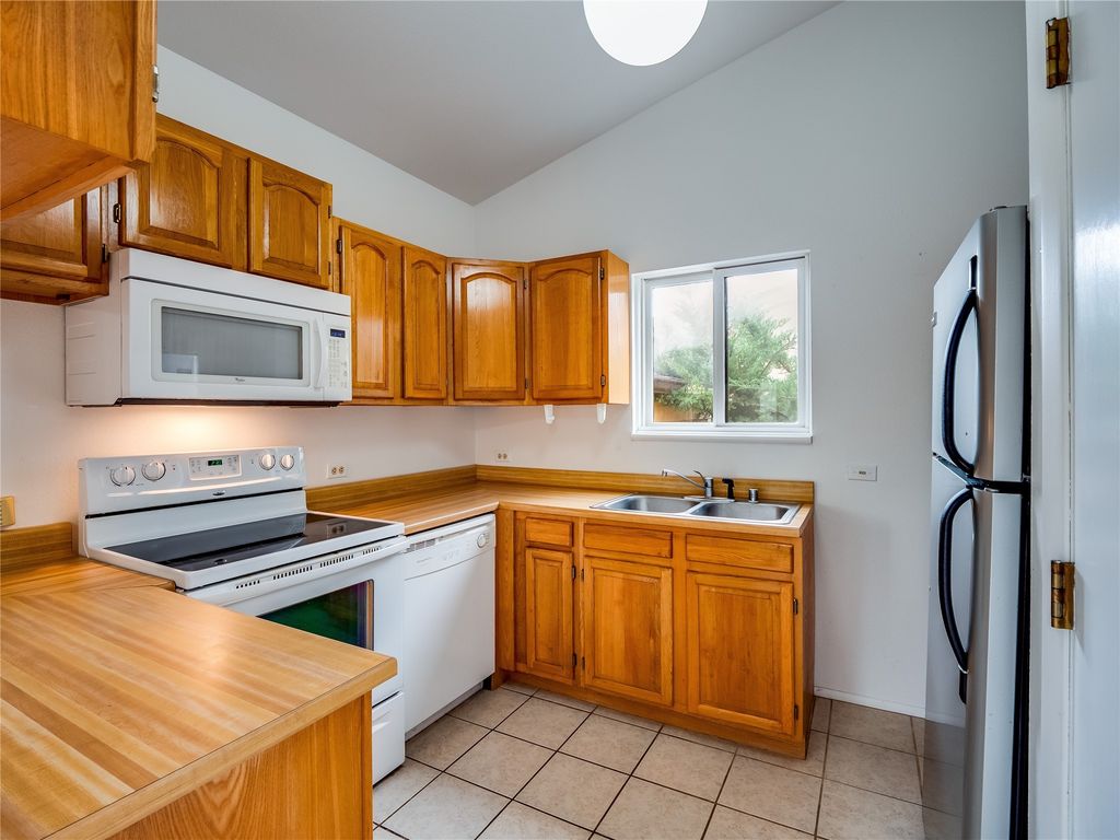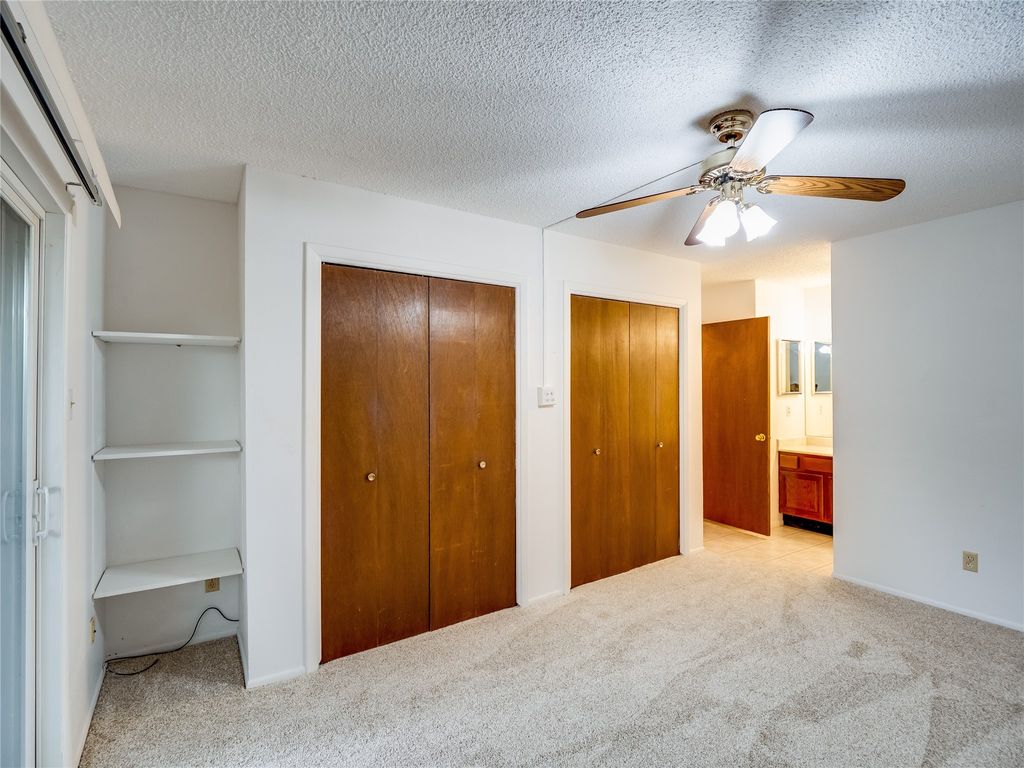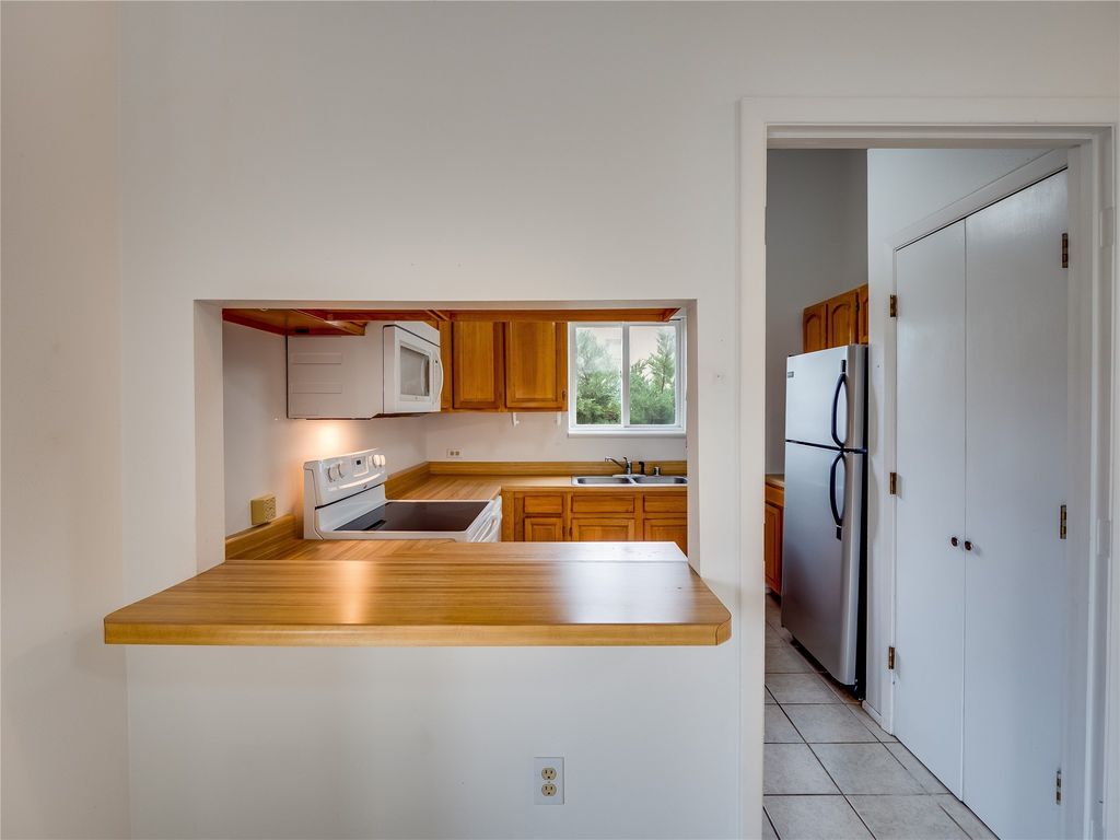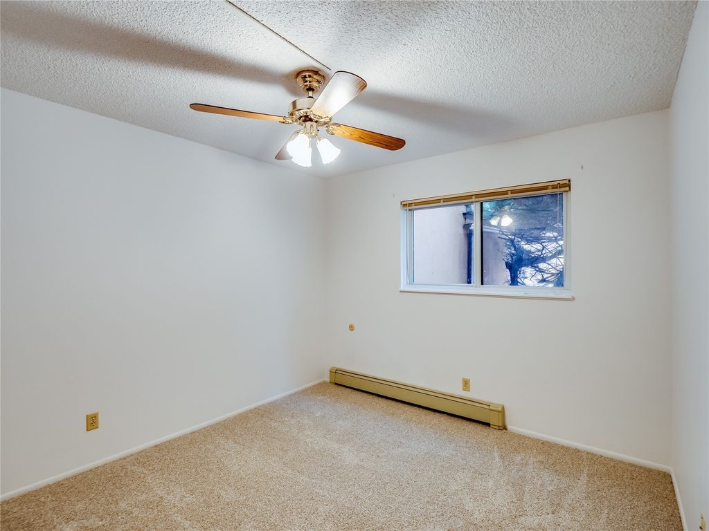 Welcome to this charming two-story condo located in the desirable Eastern area, offering comfort, functionality, and inviting spaces both indoors and out. Step through the front entrance and head upstairs to the main living level, where natural light fills the open-concept living and dining area. Vaulted ceilings and tile flooring create a bright, airy atmosphere, while the centerpiece wood-burning fireplace adds warmth and character. Sliding glass doors lead to a spacious wood deck with stunning mountain views - perfect for outdoor lounging, morning coffee, or summer BBQs. The kitchen is conveniently connected to the dining space, featuring wood cabinetry, a stainless steel refrigerator, a pantry, and a peninsula counter with a pass-through window for easy serving and conversation. Also on this level is a generous powder room, complete with a long vanity and single sink. Downstairs, brand-new plush carpet adds comfort throughout. This level includes a spacious guest bedroom and a private primary en-suite. The primary retreat boasts a large bedroom with double closets and access to a secluded deck - an ideal spot for unwinding at the end of the day. A shared full bathroom offers a tiled shower/tub and a single-sink vanity. For added convenience, a laundry closet with included washer and dryer, along with a deep storage closet, completes the lower level. This property also comes with a detached one-car garage, providing covered parking and extra storage space. Set in a quiet location close to parks, trails, shopping, and entertainment, this condo provides the perfect combination of peaceful living and everyday convenience. Don't miss the opportunity to make this inviting property yours - schedule a tour today!