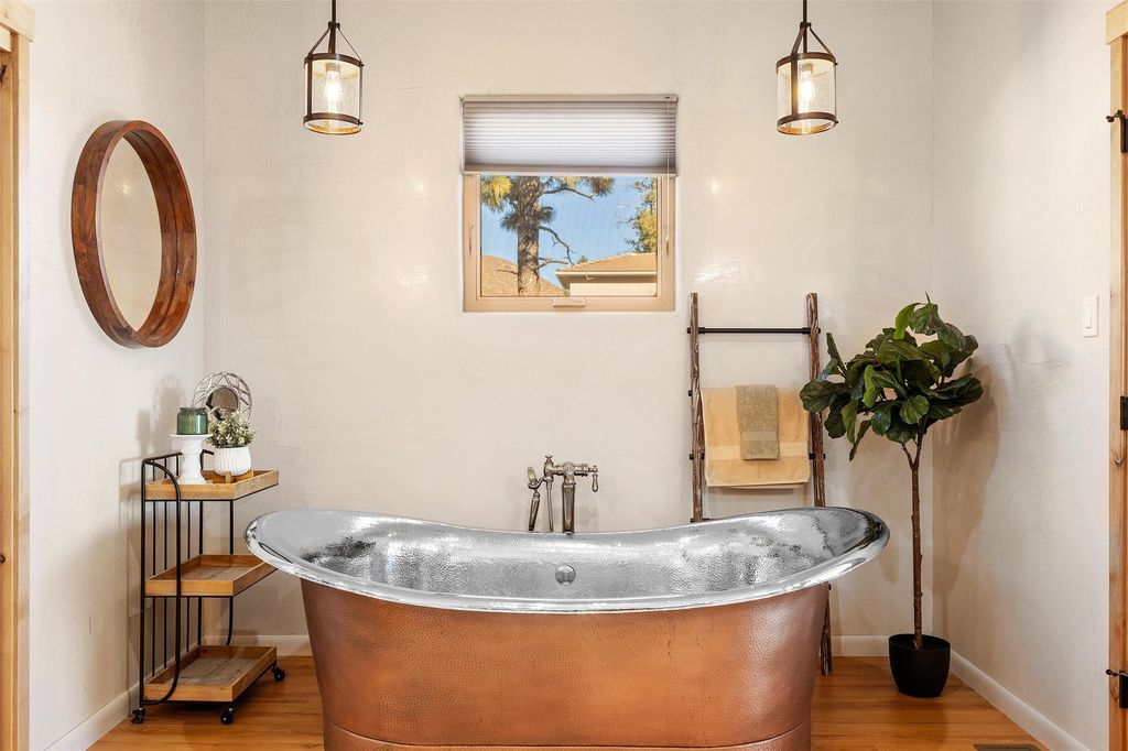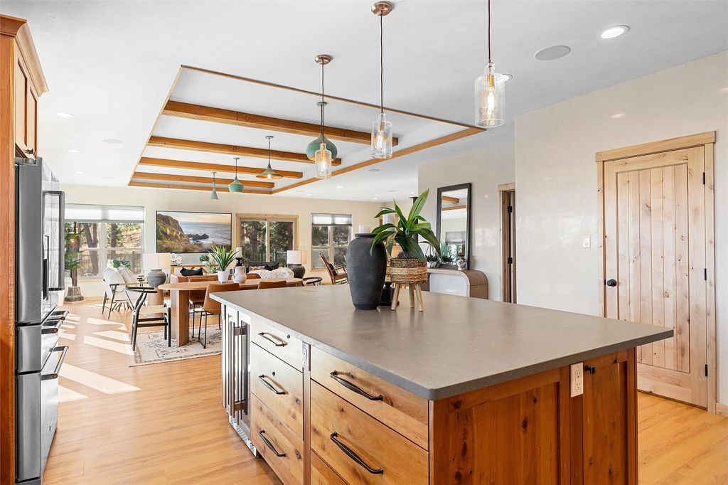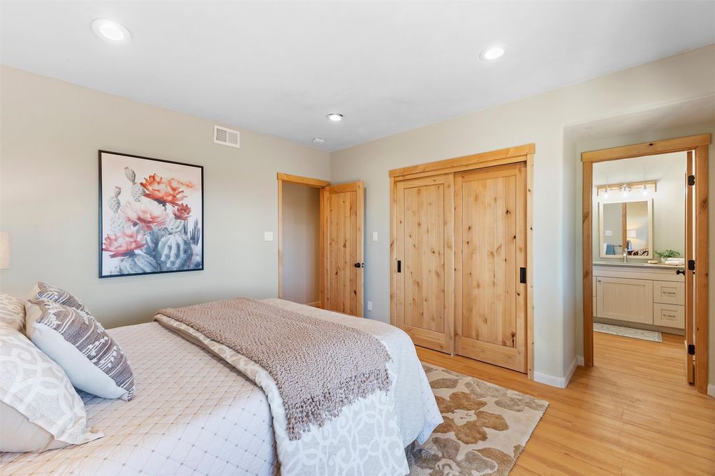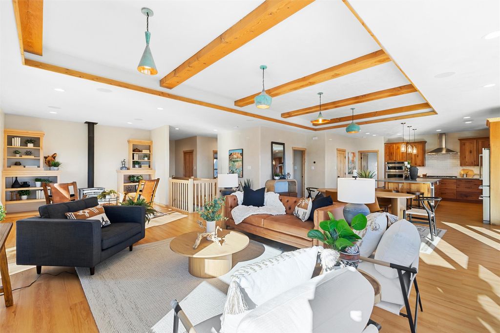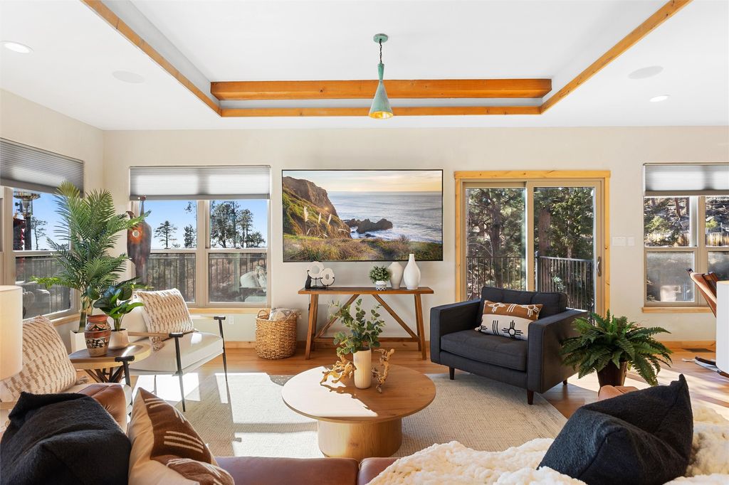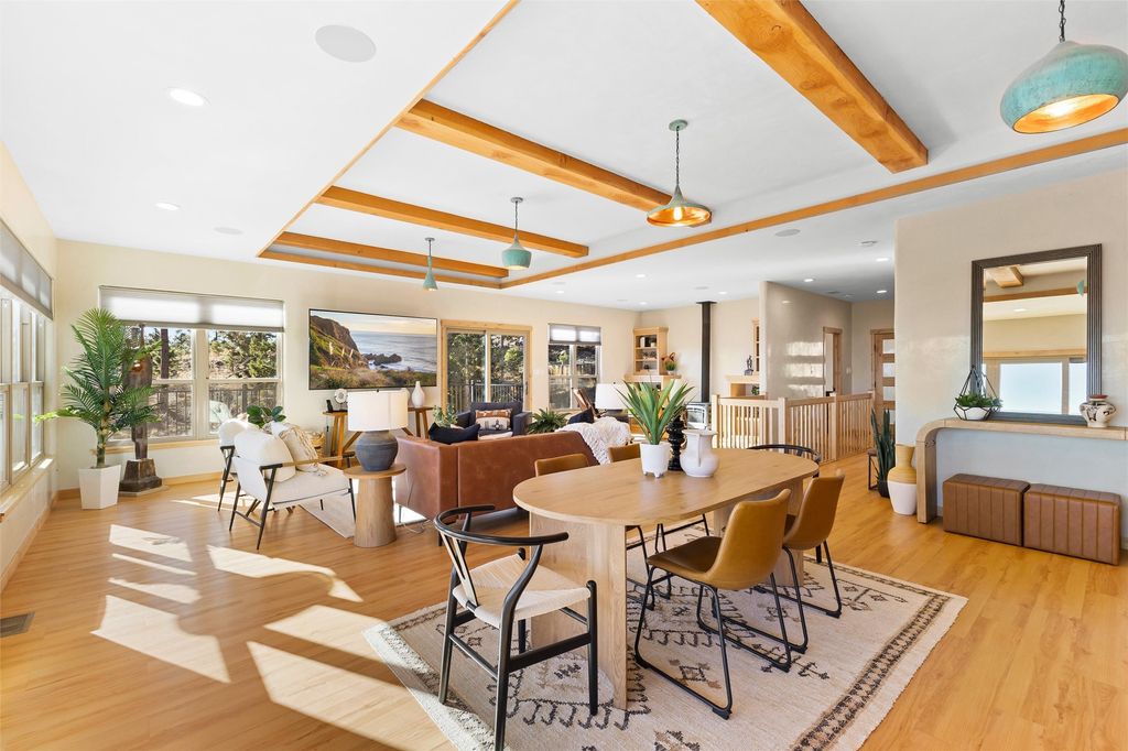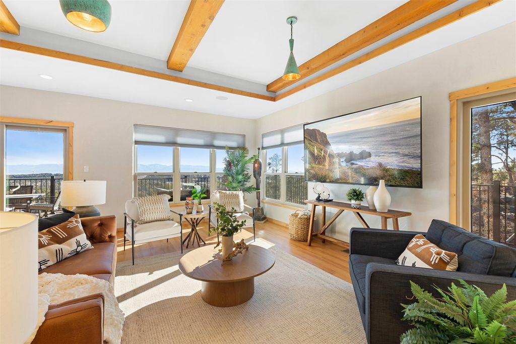Tucked at the end of a quiet cul-de-sac in one of Los Alamos' most desirable neighborhoods, 1610 Solana is a truly rare offering. Set on over one acre (the largest lot in the neighborhood) and backing to National Forest and County land for unmatched privacy and a breathtaking natural backdrop. With arguably the best views in town, you'll enjoy sweeping vistas of the townsite, the Sangre de Cristo range, and more from multiple spaces throughout the home. Finished in 2022, this stunning residence offers over 3,500 square feet of modern, beautifully crafted living space and all of the contemporary amenities today's buyers expect. The primary suite is a showstopper with a private deck walkout, an enviable walk-in closet, and a spa-inspired ensuite highlighted by a copper soaking tub. Designed for comfortable main-floor living, the upper level includes two additional bedrooms, one with its own ensuite plus an additional full bath. Venetian plaster walls add softness and sophistication to the main living areas, while multiple gathering spaces provide room to relax or entertain with ease. Head outside to the wrap-around deck with a covered porch, the perfect place to take in the views in every season. The walkout basement expands your options with another spacious family room, a guest bedroom with attached bath, and a versatile bonus room ideal for an office or additional guest space, complete with a Murphy bed. An oversized two-car garage offers generous storage and flexible space for a home gym or workshop, and the large laundry room with attached mudroom just off the garage keeps daily life organized and effortless. New, modern, spacious, and surrounded by nature, 1610 Solana delivers the Los Alamos lifestyle at its finest.