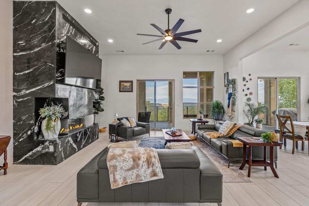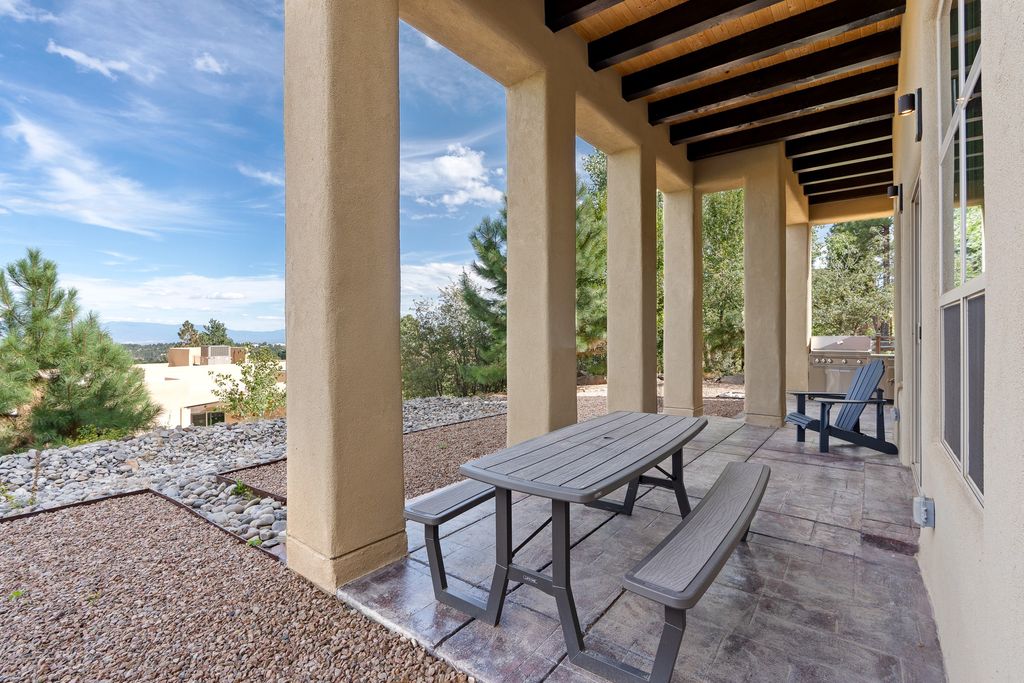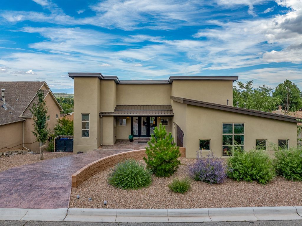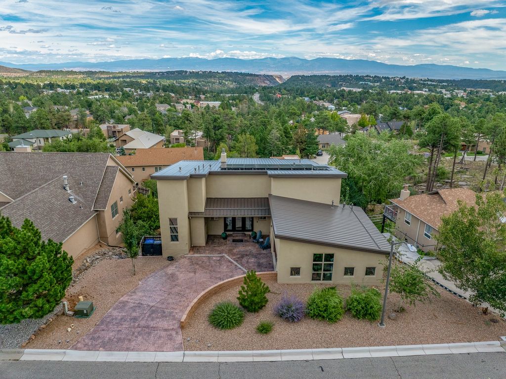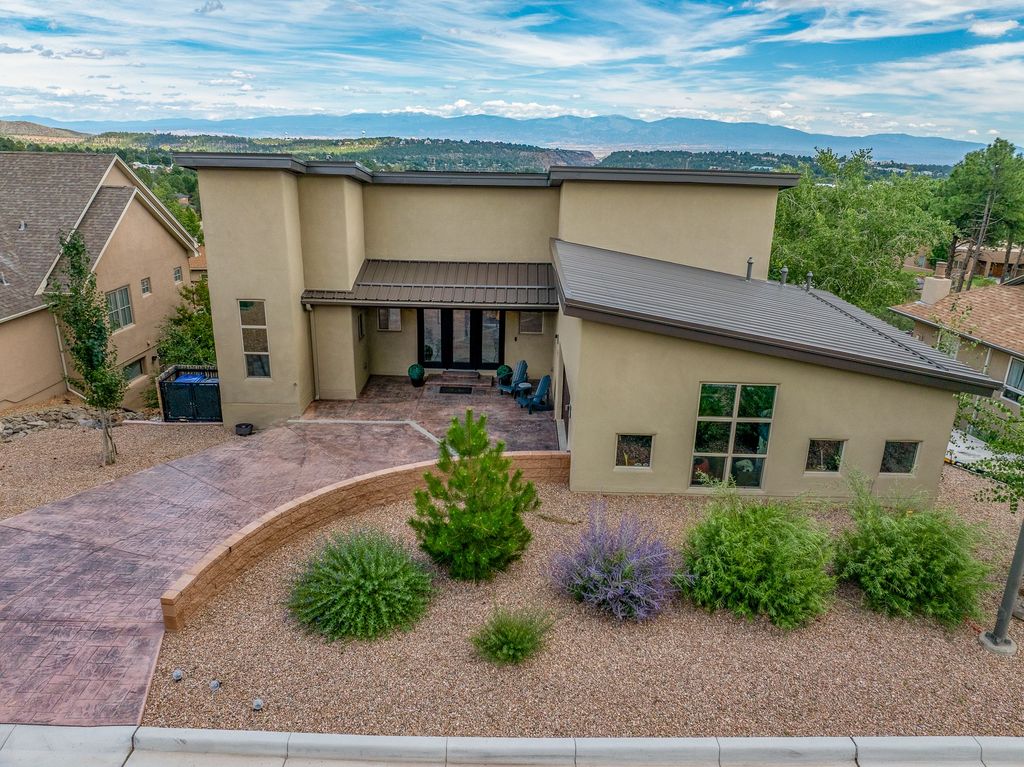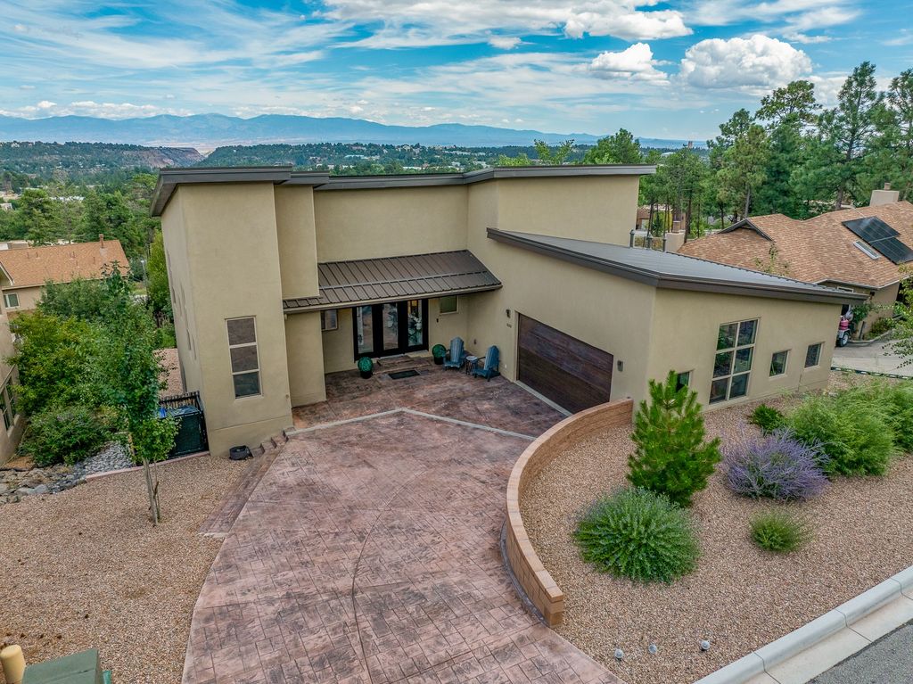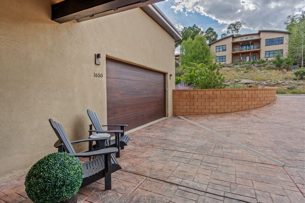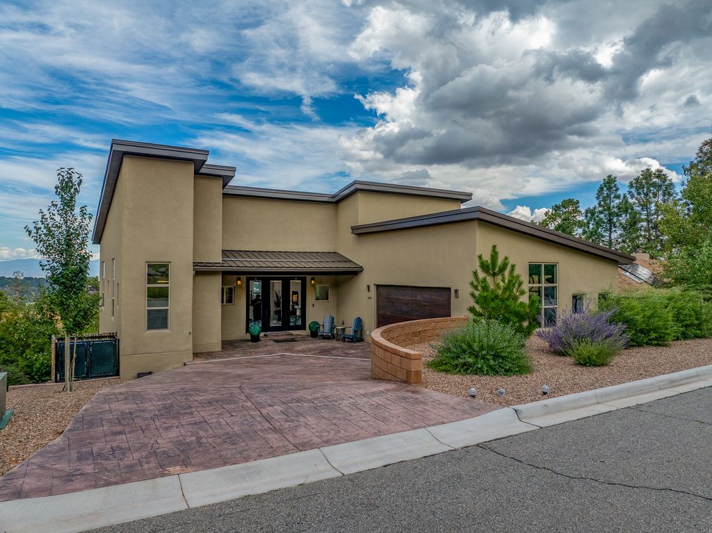Unbelievable Views and Modern Luxury in Quemazon! Welcome to 1650 Sereno! This beautiful home was completed in 2023 and features 12 ft ceilings, 4 bedrooms, 3300+ sq ft of living space, Tesla Powerwalls (x2), solar panels, vehicle charger, a custom gas fireplace, radiant in-floor heating throughout, central air conditioning, a chef's kitchen, and more! As you enter the front door, the tall ceilings and views through the living room windows will captivate you and draw you inside, where you are free to explore the open floor plan of the main living space. Grab your favorite beverage from the chef's kitchen, and make your way onto the balcony to enjoy spectacular views of the Sangre de Cristo range to the east while looking straight down Los Alamos Canyon. The living room features a custom gas fireplace to keep you warm on those cool fall evenings and sliding glass doors to the covered balcony. The chef's kitchen includes ZLine appliances, granite counter tops, barstool seating, a farmhouse sink, and a wall of windows allowing the chef to enjoy natural light while preparing meals. The large primary suite is also on the main floor, allowing for single-level living. The primary suite includes a large bedroom, a walk-in closet, and an en-suit bathroom. The en-suite bathroom includes dual sinks, and a fully enclosed shower room includes a therapy tub for soaking after a day in the mountains. A bar and powder room round out the first floor of this home. Downstairs, you will find an additional living area with a walk-out patio area with a built-in outdoor kitchen for additional entertaining opportunities. Three additional bedrooms and a guest bathroom provide you with ample room to host guests. In-floor radiant heating will keep the home comfortable throughout the winter, and central air conditioning will keep you cool in the summer. Solar panels will lower your electric bills, and the Tesla smart Powerwalls will keep your home up and running when everyone else's lights go dark. The garage is also ready for your Tesla vehicles, with a charging station for both bays and custom cabinets for storage. The garage floor has been professionally finished with floor epoxy to provide you with a durable, protective, and attractive surface, enhancing its longevity and functionality with an easy-to-clean barrier. Dream homes like this rarely hit the market in Los Alamos, so schedule your showing today before you miss this one!