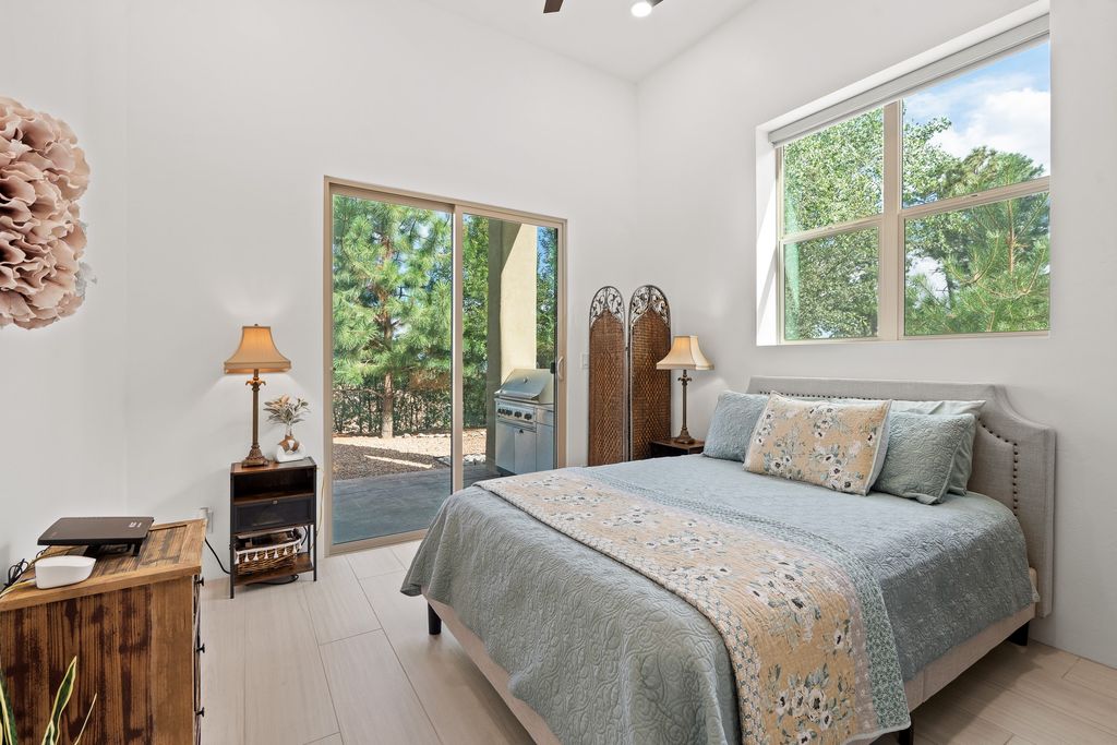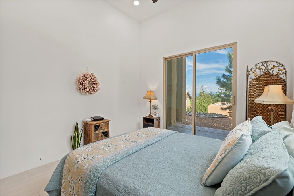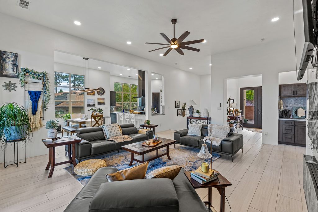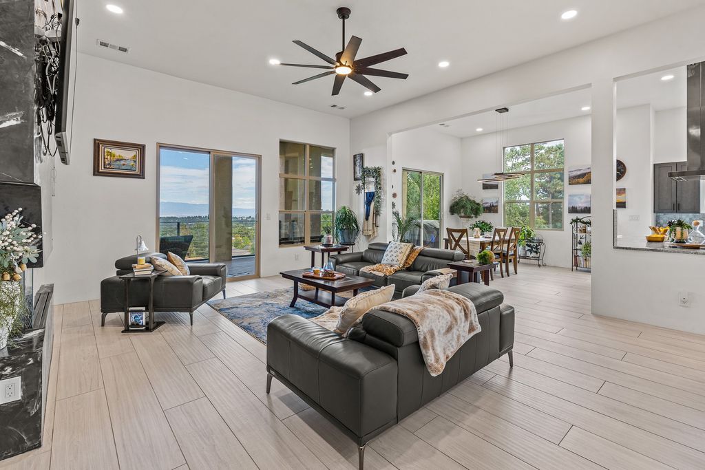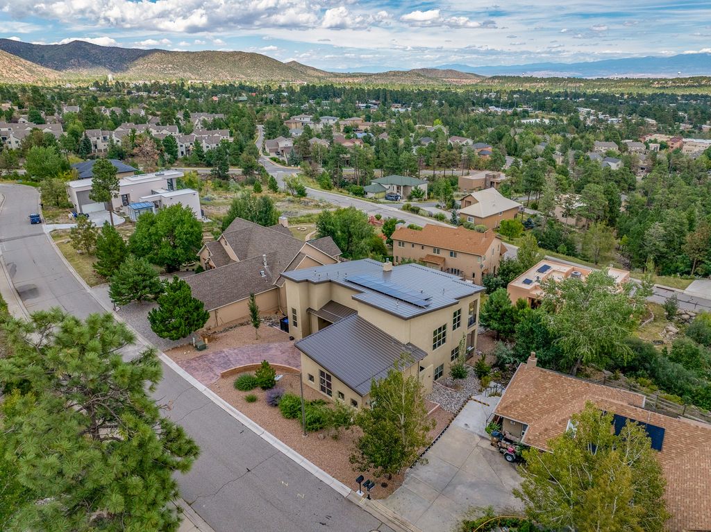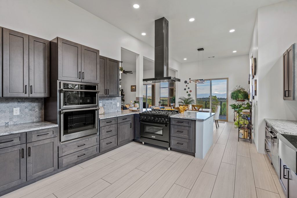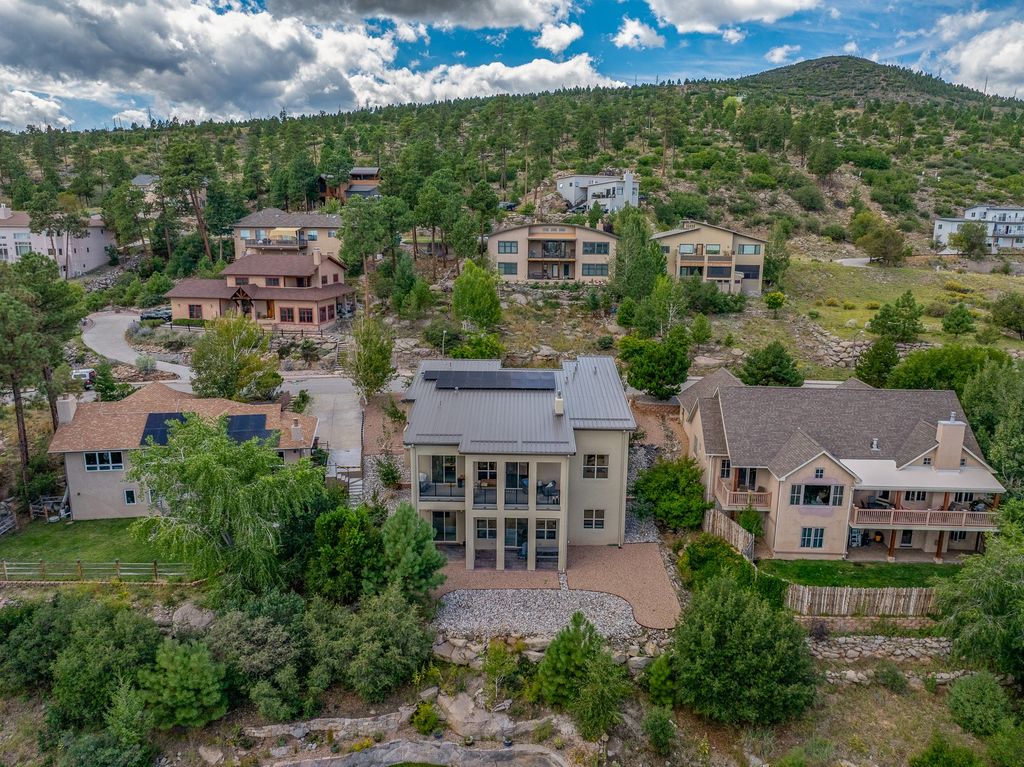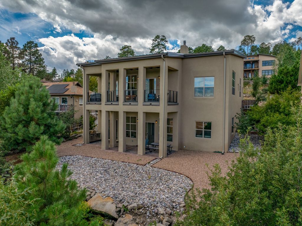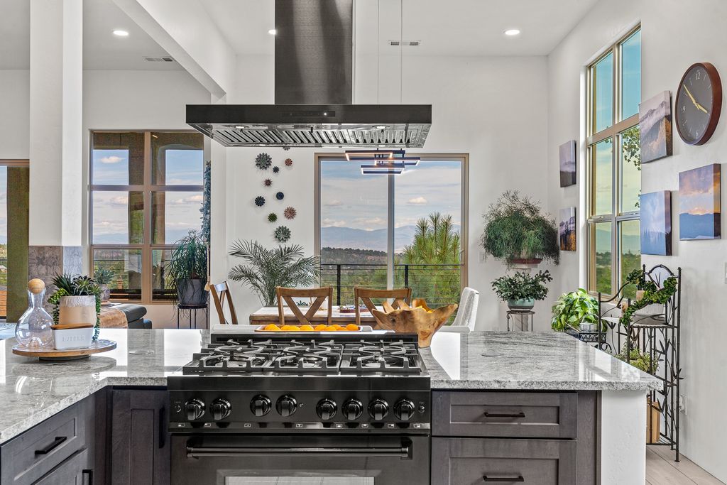 Unbelievable Views and Modern Luxury in Quemazon! Welcome to 1650 Sereno! This beautiful home was completed in 2023 and features 12 ft ceilings, 4 bedrooms, 3300+ sq ft of living space, Tesla Powerwalls (x2), solar panels, vehicle charger, a custom gas fireplace, radiant in-floor heating throughout, central air conditioning, a chef's kitchen, and more! As you enter the front door, the tall ceilings and views through the living room windows will captivate you and draw you inside, where you are free to explore the open floor plan of the main living space. Grab your favorite beverage from the chef's kitchen, and make your way onto the balcony to enjoy spectacular views of the Sangre de Cristo range to the east while looking straight down Los Alamos Canyon. The living room features a custom gas fireplace to keep you warm on those cool fall evenings and sliding glass doors to the covered balcony. The chef's kitchen includes ZLine appliances, granite counter tops, barstool seating, a farmhouse sink, and a wall of windows allowing the chef to enjoy natural light while preparing meals. The large primary suite is also on the main floor, allowing for single-level living. The primary suite includes a large bedroom, a walk-in closet, and an en-suit bathroom. The en-suite bathroom includes dual sinks, and a fully enclosed shower room includes a therapy tub for soaking after a day in the mountains. A bar and powder room round out the first floor of this home. Downstairs, you will find an additional living area with a walk-out patio area with a built-in outdoor kitchen for additional entertaining opportunities. Three additional bedrooms and a guest bathroom provide you with ample room to host guests. In-floor radiant heating will keep the home comfortable throughout the winter, and central air conditioning will keep you cool in the summer. Solar panels will lower your electric bills, and the Tesla smart Powerwalls will keep your home up and running when everyone else's lights go dark. The garage is also ready for your Tesla vehicles, with a charging station for both bays and custom cabinets for storage. The garage floor has been professionally finished with floor epoxy to provide you with a durable, protective, and attractive surface, enhancing its longevity and functionality with an easy-to-clean barrier. Dream homes like this rarely hit the market in Los Alamos, so schedule your showing today before you miss this one!