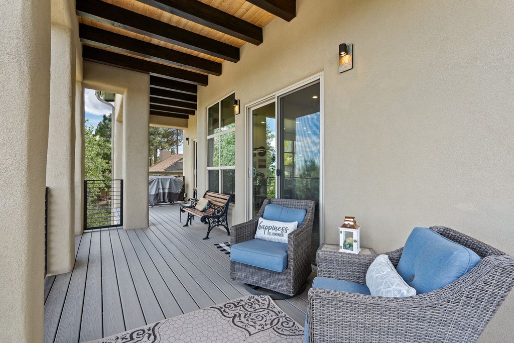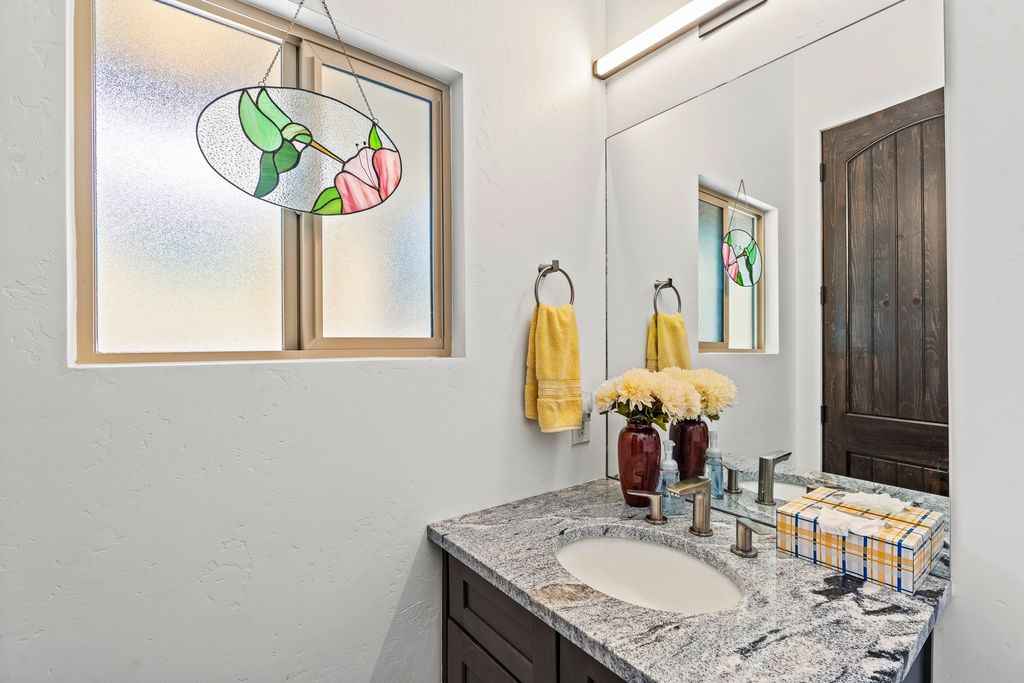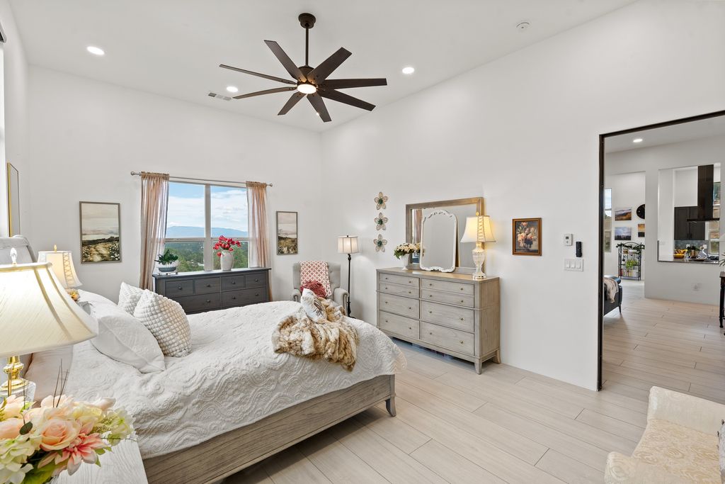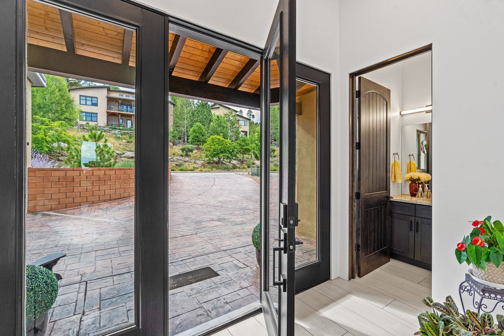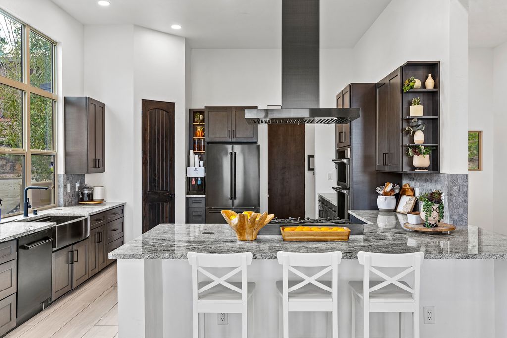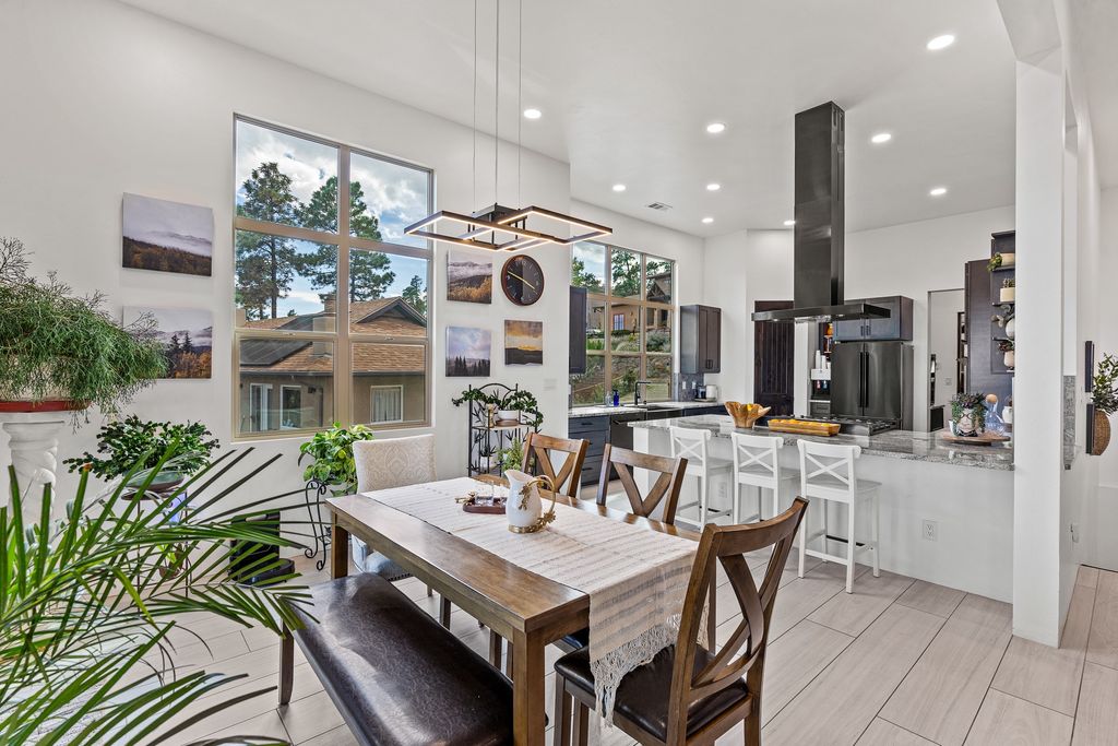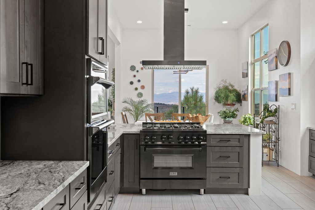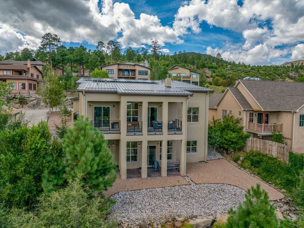 Unbelievable Views and Modern Luxury in Quemazon! Welcome to 1650 Sereno! This beautiful home was completed in 2023 and features 12 ft ceilings, 4 bedrooms, 3300+ sq ft of living space, Tesla Powerwalls (x2), solar panels, vehicle charger, a custom gas fireplace, radiant in-floor heating throughout, central air conditioning, a chef's kitchen, and more! As you enter the front door, the tall ceilings and views through the living room windows will captivate you and draw you inside, where you are free to explore the open floor plan of the main living space. Grab your favorite beverage from the chef's kitchen, and make your way onto the balcony to enjoy spectacular views of the Sangre de Cristo range to the east while looking straight down Los Alamos Canyon. The living room features a custom gas fireplace to keep you warm on those cool fall evenings and sliding glass doors to the covered balcony. The chef's kitchen includes ZLine appliances, granite counter tops, barstool seating, a farmhouse sink, and a wall of windows allowing the chef to enjoy natural light while preparing meals. The large primary suite is also on the main floor, allowing for single-level living. The primary suite includes a large bedroom, a walk-in closet, and an en-suit bathroom. The en-suite bathroom includes dual sinks, and a fully enclosed shower room includes a therapy tub for soaking after a day in the mountains. A bar and powder room round out the first floor of this home. Downstairs, you will find an additional living area with a walk-out patio area with a built-in outdoor kitchen for additional entertaining opportunities. Three additional bedrooms and a guest bathroom provide you with ample room to host guests. In-floor radiant heating will keep the home comfortable throughout the winter, and central air conditioning will keep you cool in the summer. Solar panels will lower your electric bills, and the Tesla smart Powerwalls will keep your home up and running when everyone else's lights go dark. The garage is also ready for your Tesla vehicles, with a charging station for both bays and custom cabinets for storage. The garage floor has been professionally finished with floor epoxy to provide you with a durable, protective, and attractive surface, enhancing its longevity and functionality with an easy-to-clean barrier. Dream homes like this rarely hit the market in Los Alamos, so schedule your showing today before you miss this one!