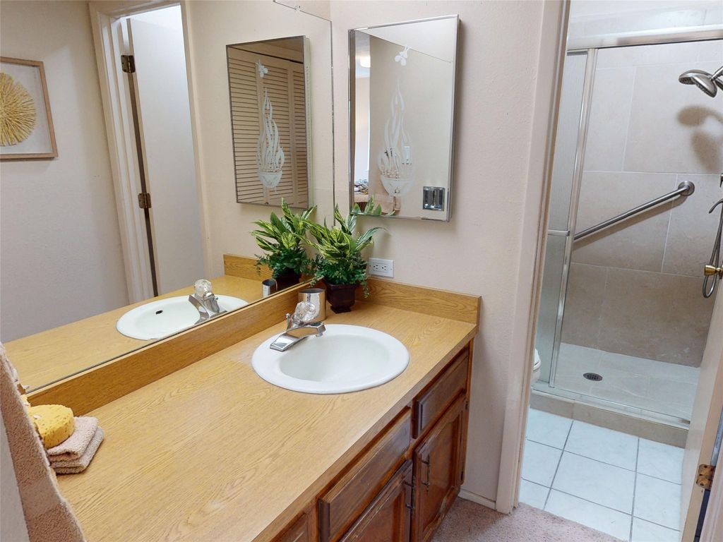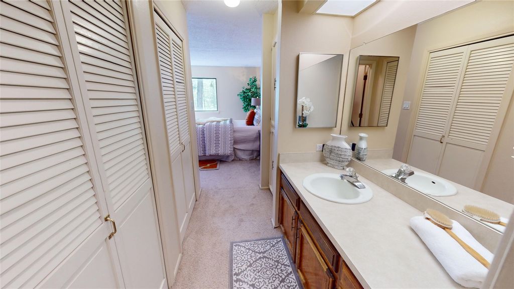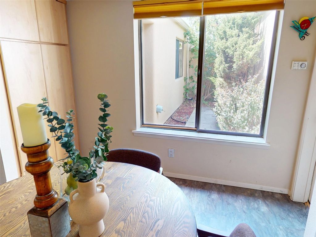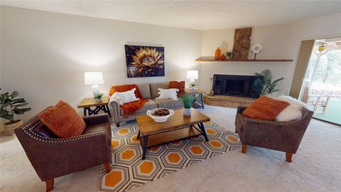 Tucked into a beautifully landscaped, tree-filled neighborhood, this 2-bedroom, 2-bathroom townhome offers comfort, convenience, and the relaxed charm of Los Alamos living. Mature pines and manicured grounds create an oasis-like setting that feels both connected and serene. A private walkway leads you to the welcoming entryway and into the spacious living room, where a wood-burning fireplace provides warmth and comfort. Large windows frame sweeping mountain and canyon views, the perfect backdrop for enjoying a cozy evening or watching birds and wildlife from the comfort of home. The updated kitchen features solid-surface countertops and warm maple cabinetry, combining timeless style with everyday function. Just off the kitchen, the inviting dining nook overlooks the private garden entryway - a cheerful spot for morning coffee. Nearby, a conveniently placed laundry closet and direct access to the spacious 2-car garage add everyday ease. Outdoor living is a highlight, with a private patio that invites you to dine al fresco or simply relax beneath the pines while enjoying the peaceful canyon views. Both generously sized bedrooms include en suite bathrooms, offering privacy and flexibility for guests, a home office, or hobbies. The primary suite is at the back of the home and enjoys south facing windows looking to the canyon. With its canyon setting, functional layout, and neighborhood that feels like a retreat, this home presents a rare opportunity to enjoy downtown Los Alamos living in a peaceful, low-maintenance setting.