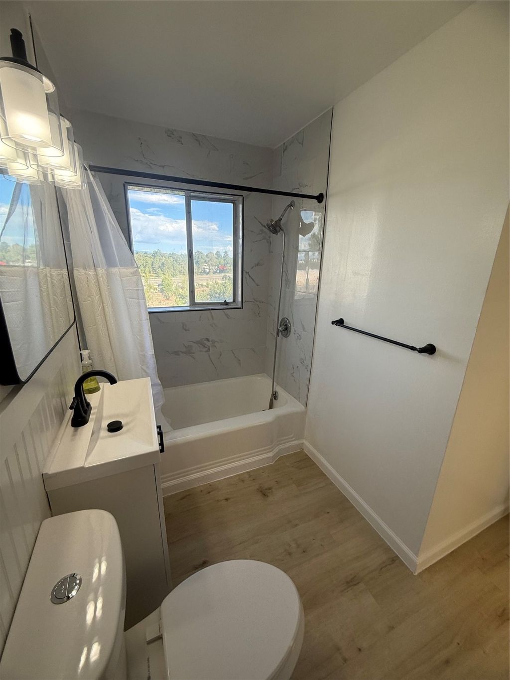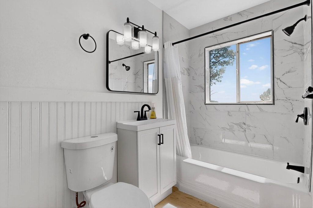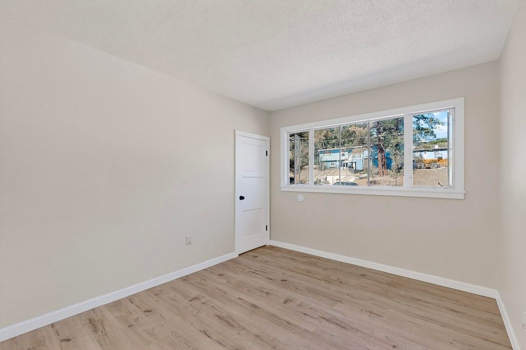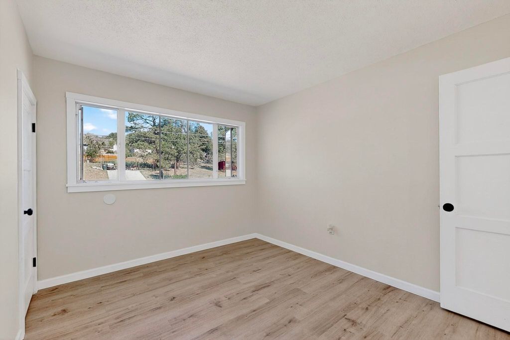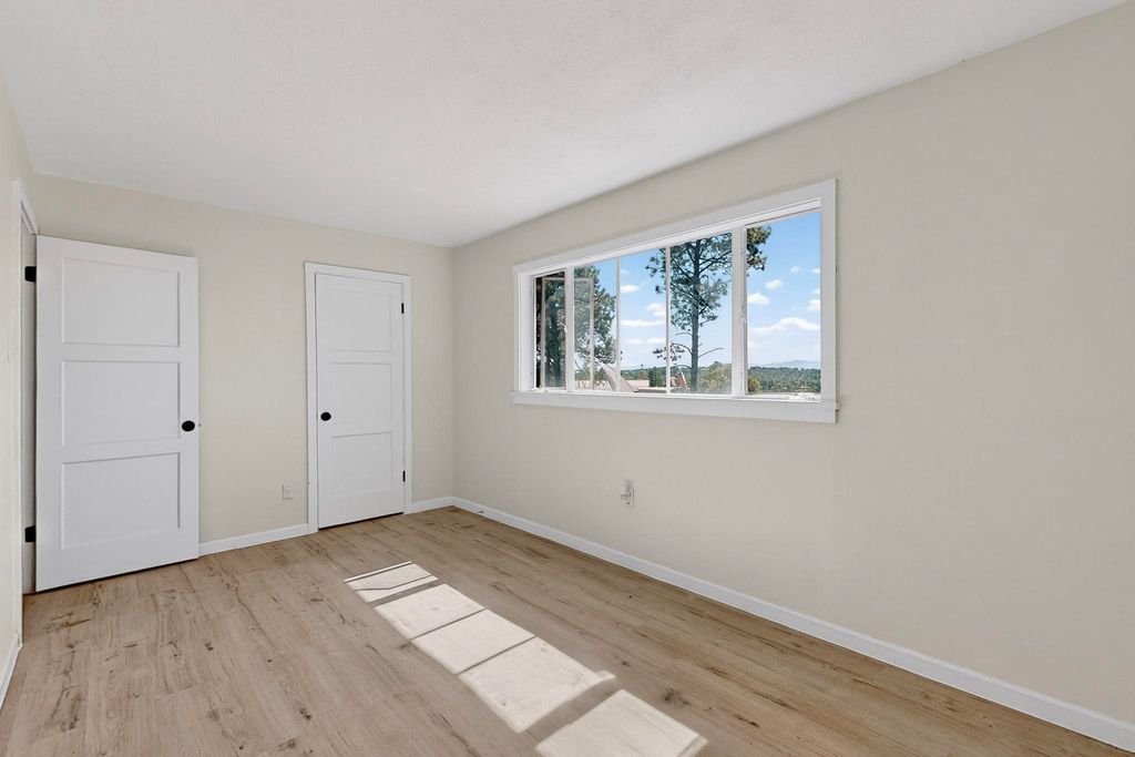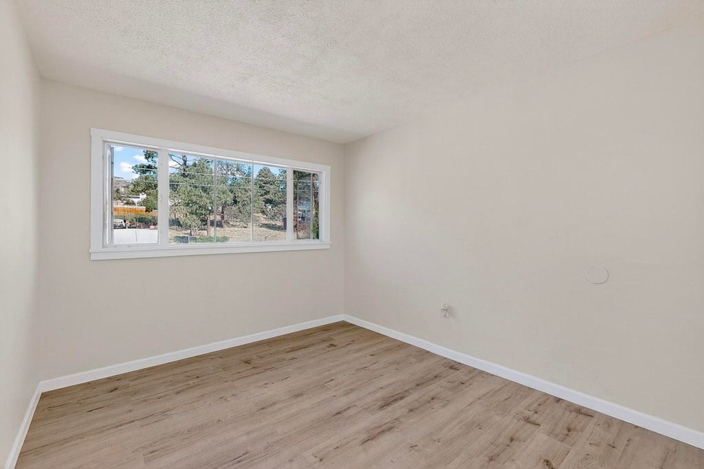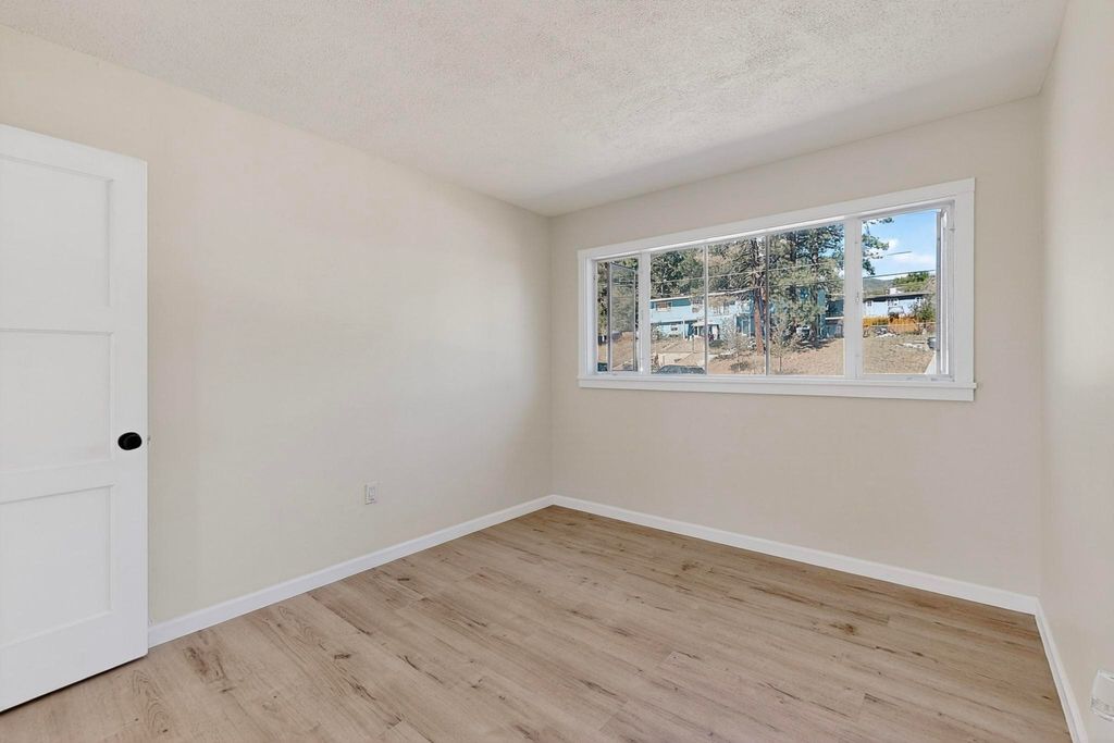 Refinished Los Alamos Condo with Fabulous Views, Smart, stylish, and bathed in natural light, this 3-bedroom, 1full bath condo seamlessly blends vintage charm with modern upgrades. The main level boasts a clean, contemporary aesthetic with crisp black-and-white finishes, top-grade new vinyl plank flooring, and a full suite of brand-new appliances - including washer, dryer, stove, fridge, and dishwasher. Sunlight pours through thoughtfully placed, generously sized windows in every room, accentuating the home's elegant lines and smart layout. Upstairs, you'll find three inviting bedrooms and a completely fresh bright new luxury vinyl floor system offering simplicity, comfort, and warmth. The private backyard frames what may be the most captivating view on the block, your own serene retreat complete with the gentle deer that may stop by to say hello. Set in a quiet, well-established neighborhood near hiking trails, excellent schools, and downtown Los Alamos, this is a rare chance to own a move-in-ready home in a deeply rooted and sought-after community. A strategic choice for buyers who value charm, quality, and long-term investment.