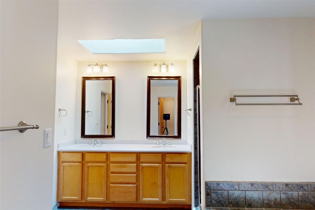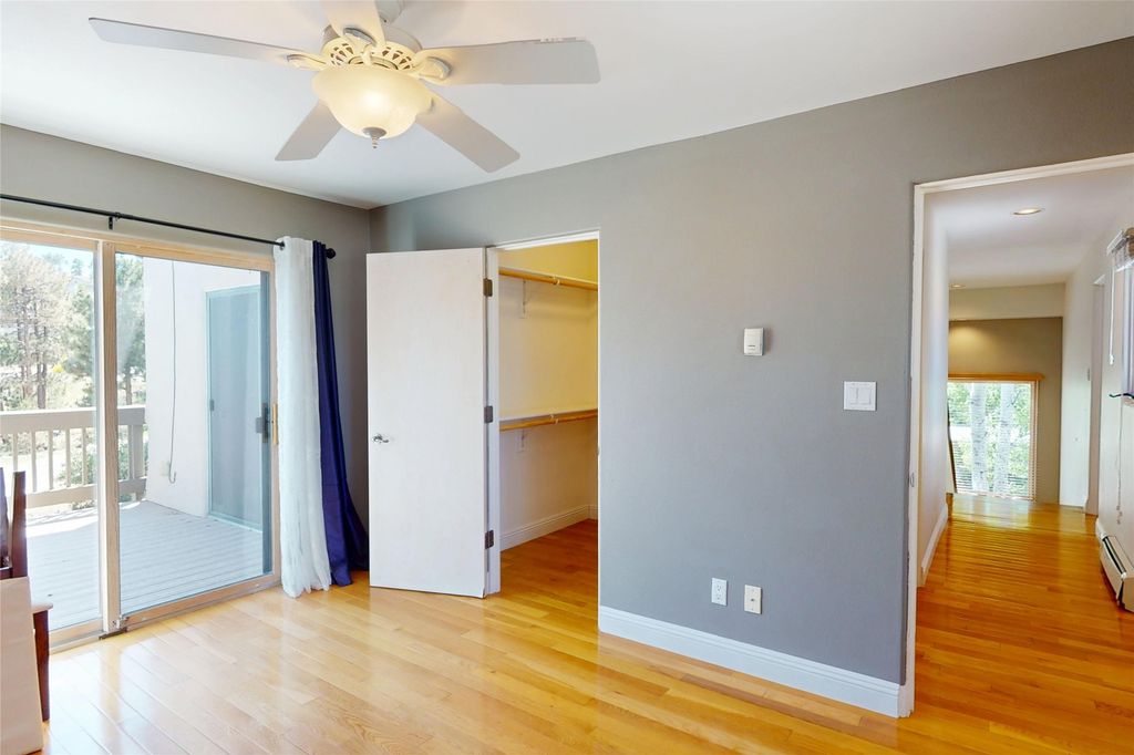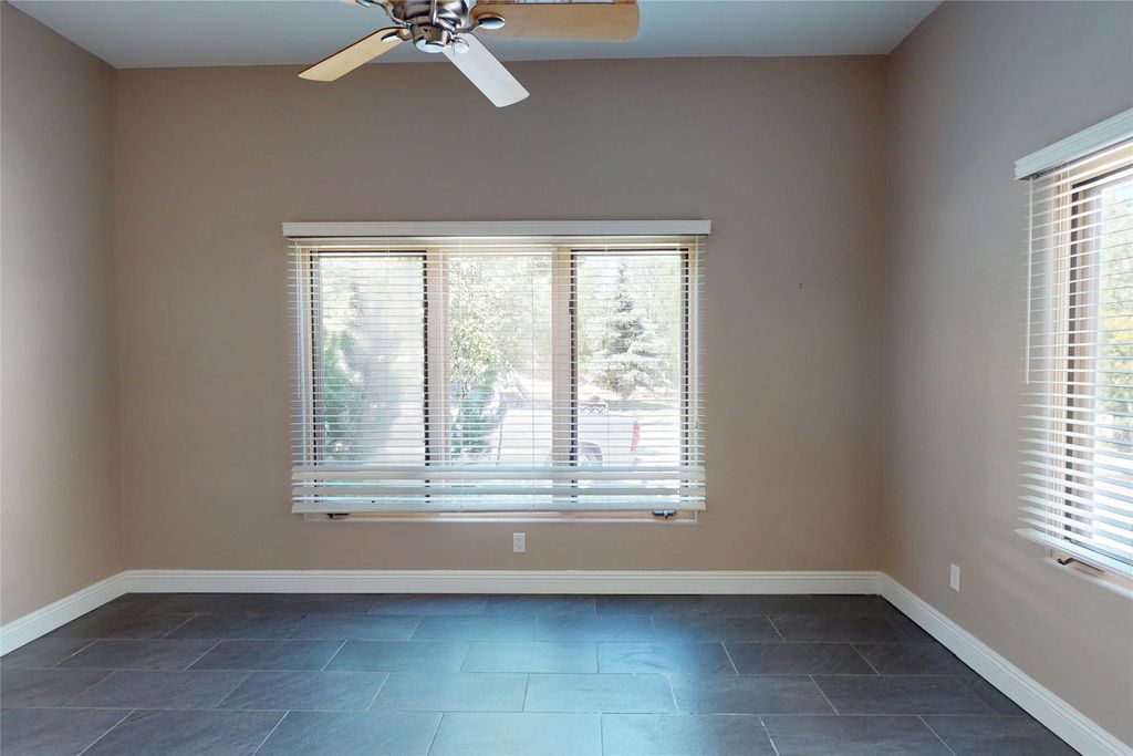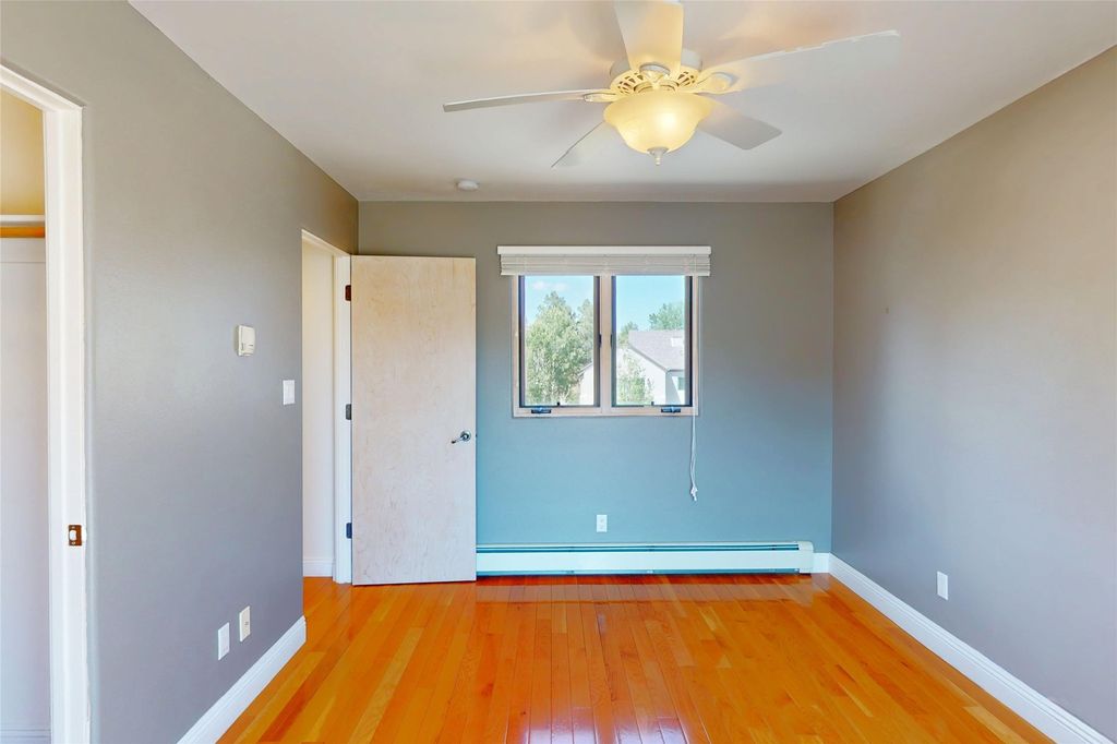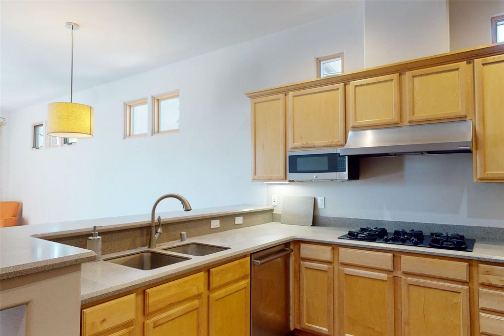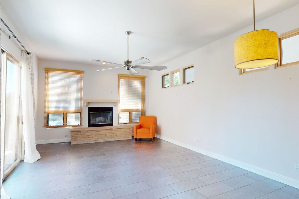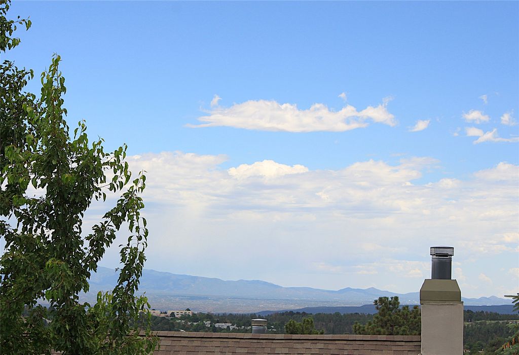 Beautiful and spacious end-unit townhome in the highly desirable Quemazon community. This light-filled 4-bedroom, 2.5 bath home offers sweeping views from every balcony. The open-concept living and dining area features 10-foot ceilings, slate tile floors, and a raised flagstone wood/gas fireplace that adds warmth and character. Large sliding glass doors open to a private, fenced courtyard that seamlessly extends the living space to the outdoors, perfect for relaxing, BBQ's and entertaining. Out the back porch gate is a #4 free city bus stop for easy access to the lab or town. The kitchen is both functional and stylish, complete with a gas stovetop, double ovens, a second sink at the wet bar, ample cabinetry, and a generous breakfast bar for casual dining. At the front of the home, a cozy sitting room, with pocket-doors for privacy, provides a versatile space, ideal as a home office/den, media or wine room, or library. A half bath and a coat closet with a large hidden finished storage area add convenience to the main level. Upstairs, you'll find beautiful hardwood floors. The serene owner's suite features a private balcony, a walk-in closet, with adjustable organizers and a luxurious five-piece bath with double vanities, a jetted tub, walk-in shower, and a separate water closet. Three additional bedrooms, each with their own deck share a full guest bath with natural sky-lighting. Additional highlights include a bright stairwell with natural hardwood finishes and built-in window seating (with hidden storage), ceiling fans in the living room and all bedrooms, upstairs laundry, and a two-car garage. As an end unit, the home benefits from enhanced natural light, Aspen tree shading and added privacy. Roof replaced in 2017 and stucco repaired in 2025. Located near hiking/biking trails and open space, this exceptional townhome offers comfort, quality, and convenience, all in one of Los Alamos's most sought-after neighborhoods.