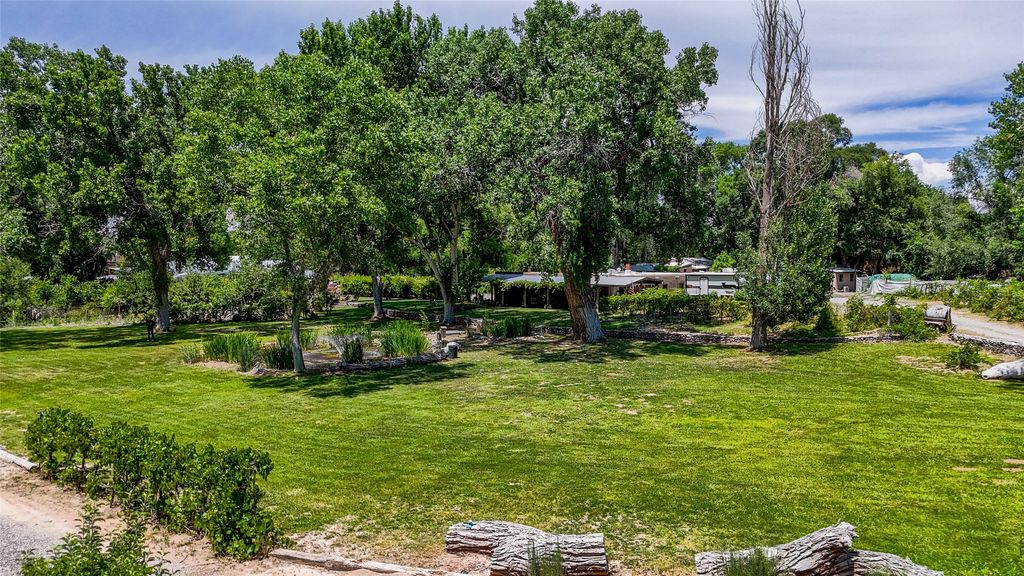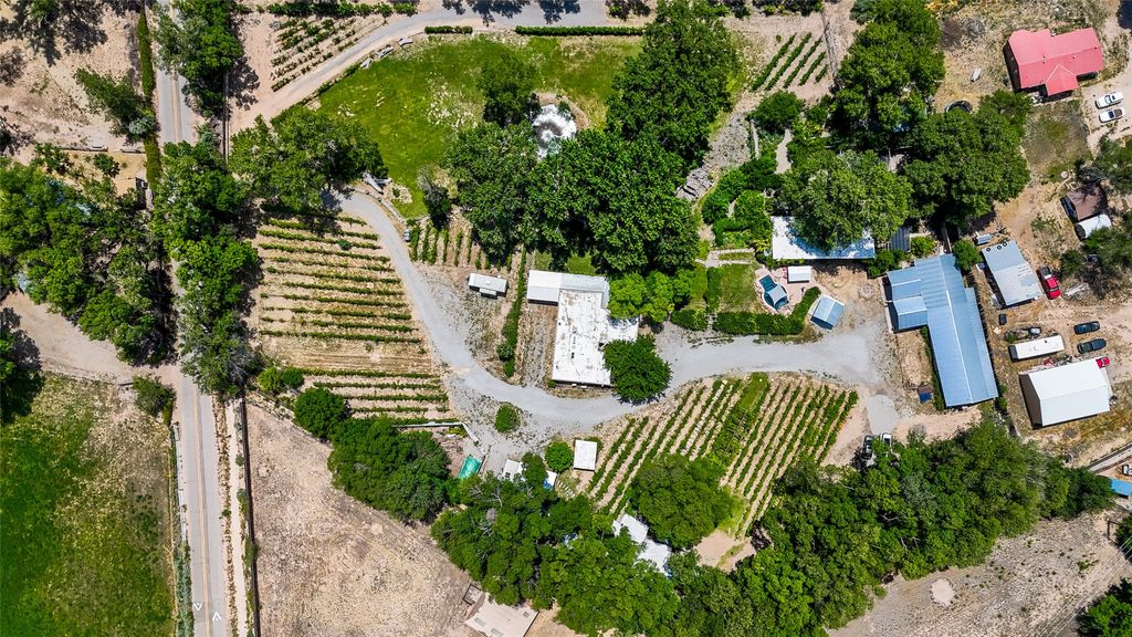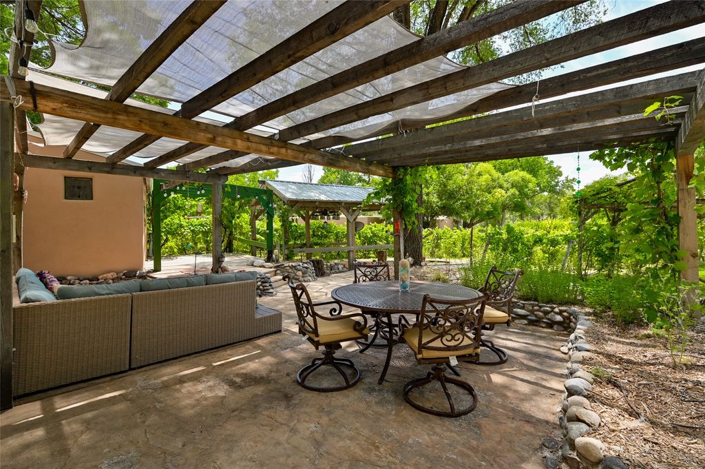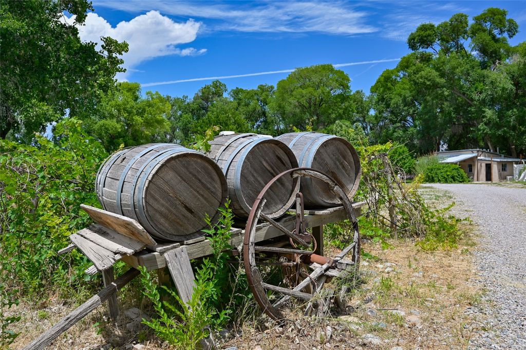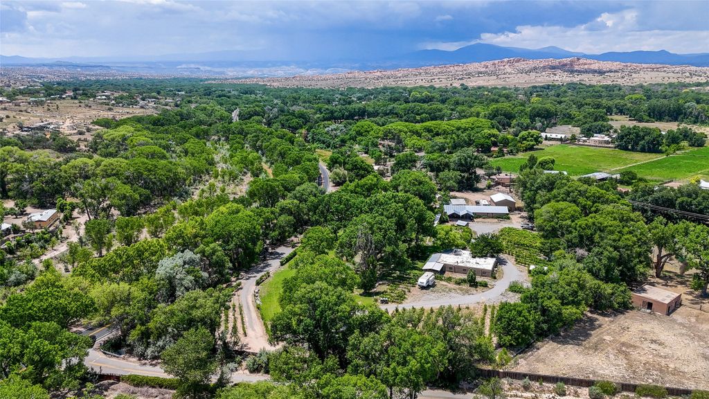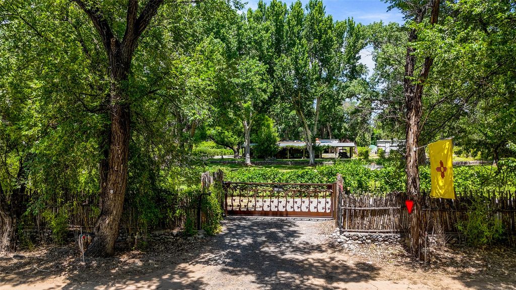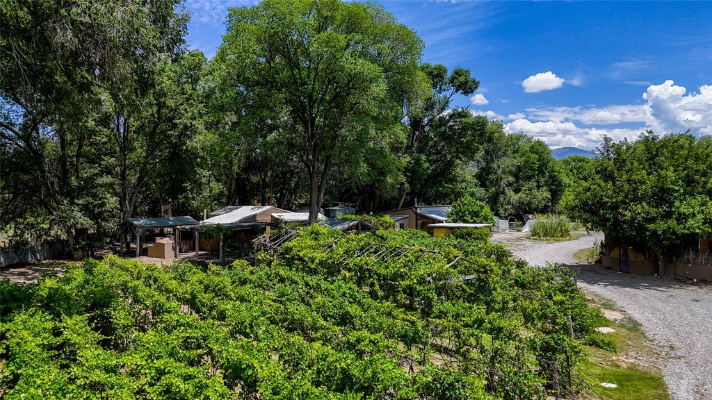 Heavenly 4.5-Acre Estate in Pojoaque Valley - Vineyard, Casitas & More! Rare opportunity to own one of the most spectacular estates in the Pojoaque Valley, just minutes from downtown Santa Fe. This 4.5-acre property offers a serene retreat with 3 acre-feet of domestic water rights and 6.91 acre-feet of irrigation water rights, supporting both vineyard expansion and lush garden potential. The grounds are also home to mature apple, plum, pear, and cherry trees. The main residence is a classic adobe featuring 4 bedrooms and 2 bathrooms (ESTIMATED SQ. FT. 2300), with traditional New Mexican details including vigas, brick floors, two rock fireplaces, and a spacious portal perfect for outdoor living. Three additional casitas (ESTIMATED TOTAL 3100 SQ. FT. COMBINED) provide excellent flexibility: 1BR/1BA Casita - 800 sq. ft. 2BR/2BA Casita - 811 sq. ft. 1BR / 1BA Casita ready for your personal touch and renovation vision - 1500 sq. ft. Ideal for short-term rentals, guest stays, or multi-generational living. Outdoor amenities offer exceptional entertainment and relaxation opportunities: 25-person hot tub/pool Firepit lounge area Outdoor bathrooms and showers Brick pizza ovens Wine cellar 2 RV hookups A large metal barn offers generous storage or potential for workshop, studio, or event use. Whether you dream of running a boutique vineyard, hosting retreats, or simply living in peaceful luxury, this unique Pojoaque Valley estate delivers charm, privacy, and unlimited potential.
