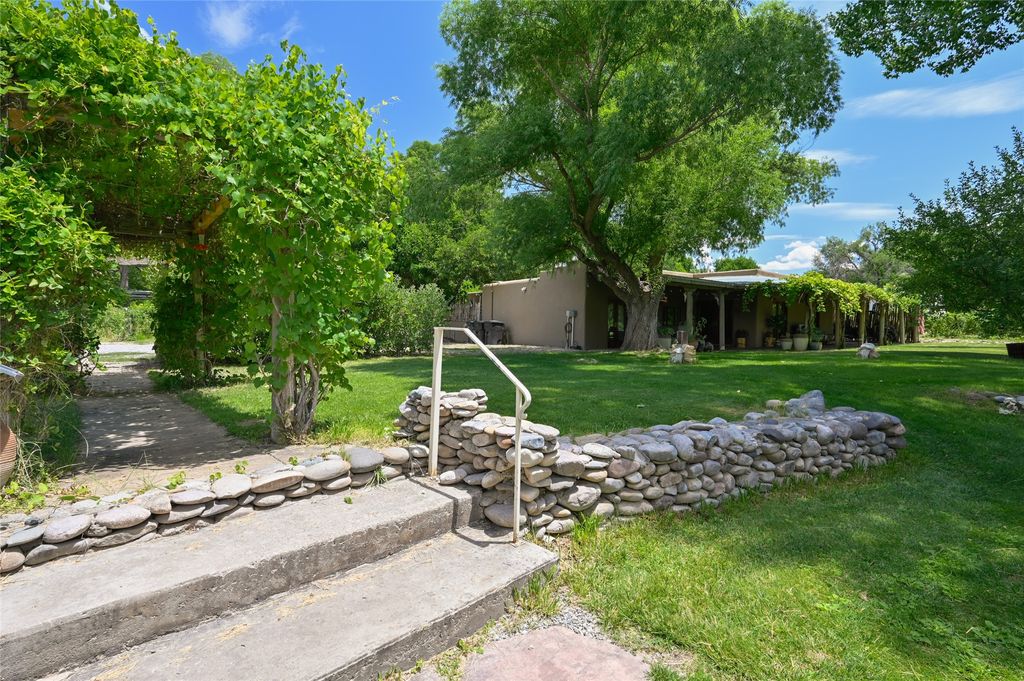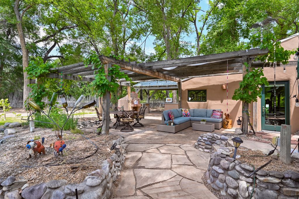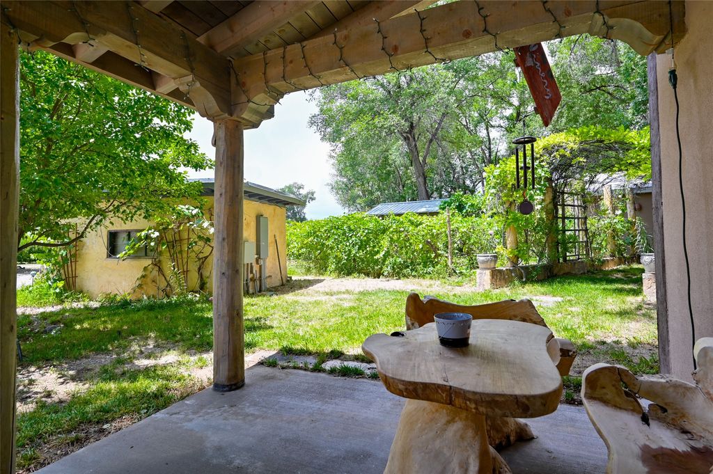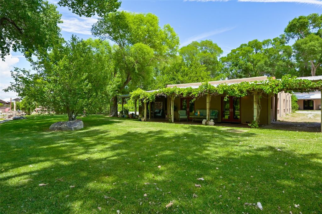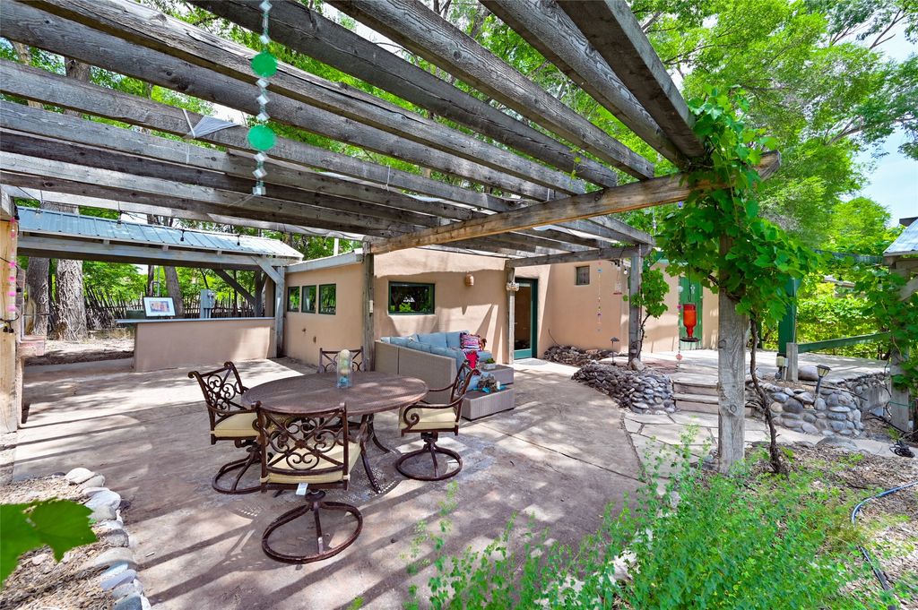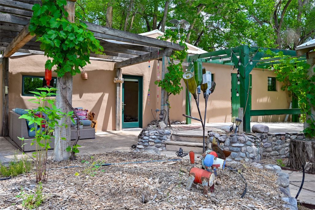 Heavenly 4.5-Acre Estate in Pojoaque Valley - Vineyard, Casitas & More! Rare opportunity to own one of the most spectacular estates in the Pojoaque Valley, just minutes from downtown Santa Fe. This 4.5-acre property offers a serene retreat with 3 acre-feet of domestic water rights and 6.91 acre-feet of irrigation water rights, supporting both vineyard expansion and lush garden potential. The grounds are also home to mature apple, plum, pear, and cherry trees. The main residence is a classic adobe featuring 4 bedrooms and 2 bathrooms (ESTIMATED SQ. FT. 2300), with traditional New Mexican details including vigas, brick floors, two rock fireplaces, and a spacious portal perfect for outdoor living. Three additional casitas (ESTIMATED TOTAL 3100 SQ. FT. COMBINED) provide excellent flexibility: 1BR/1BA Casita - 800 sq. ft. 2BR/2BA Casita - 811 sq. ft. 1BR / 1BA Casita ready for your personal touch and renovation vision - 1500 sq. ft. Ideal for short-term rentals, guest stays, or multi-generational living. Outdoor amenities offer exceptional entertainment and relaxation opportunities: 25-person hot tub/pool Firepit lounge area Outdoor bathrooms and showers Brick pizza ovens Wine cellar 2 RV hookups A large metal barn offers generous storage or potential for workshop, studio, or event use. Whether you dream of running a boutique vineyard, hosting retreats, or simply living in peaceful luxury, this unique Pojoaque Valley estate delivers charm, privacy, and unlimited potential.