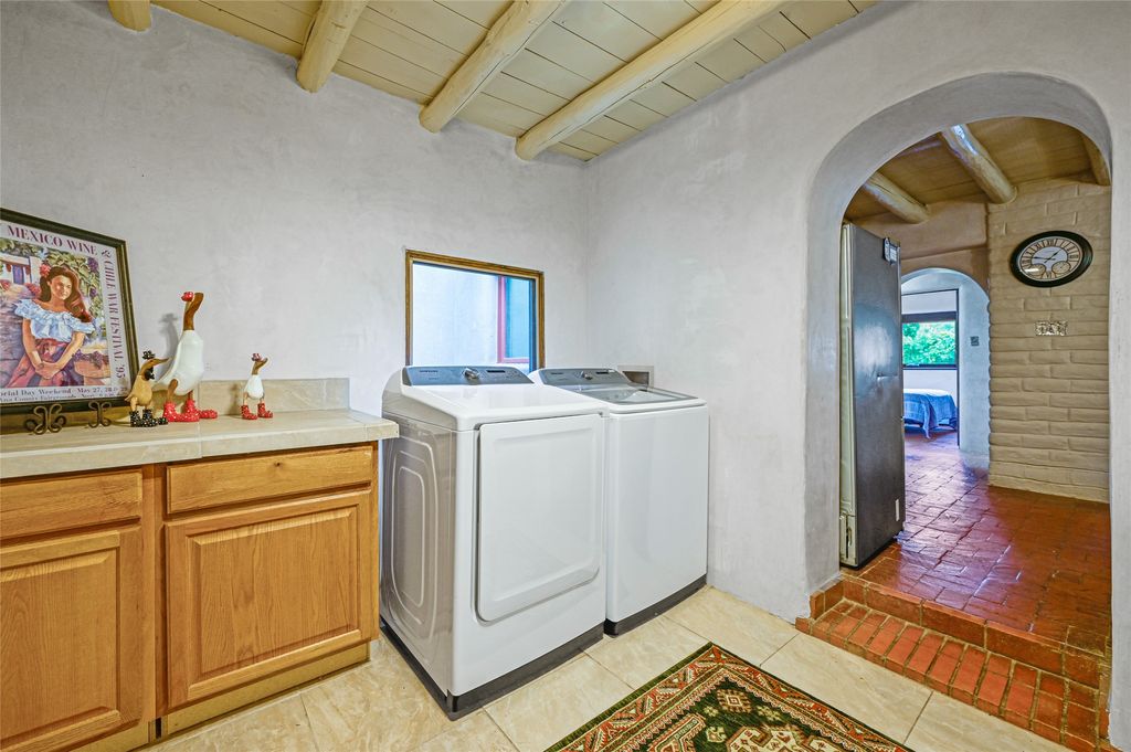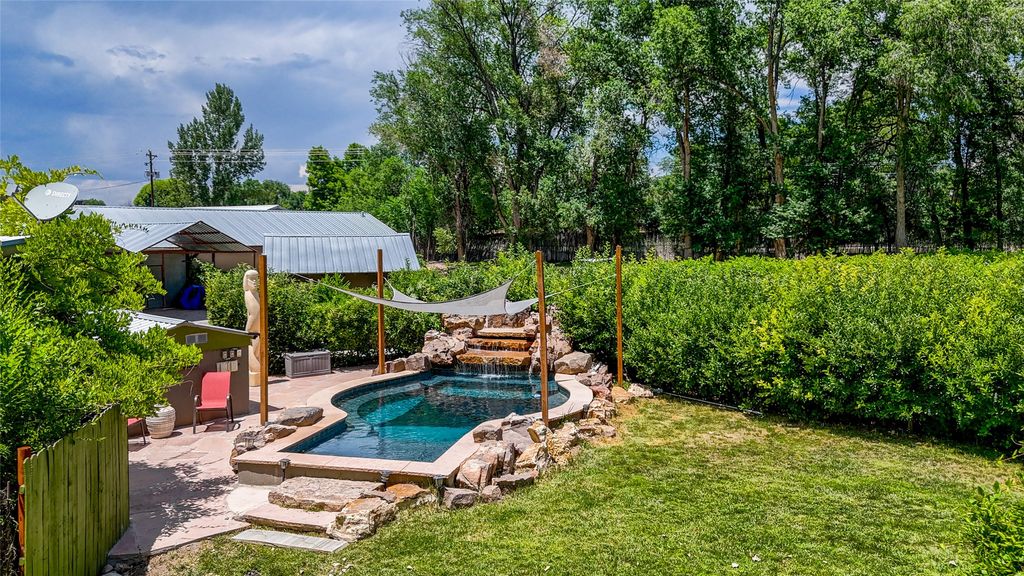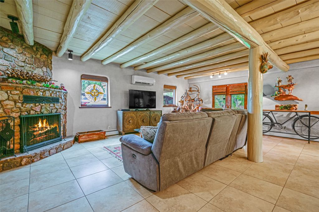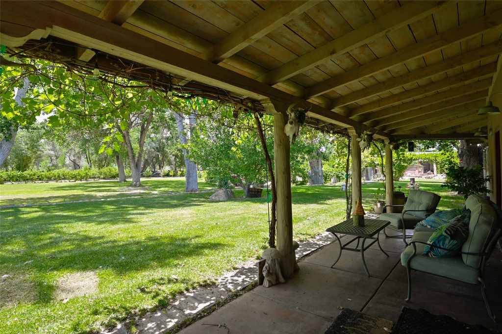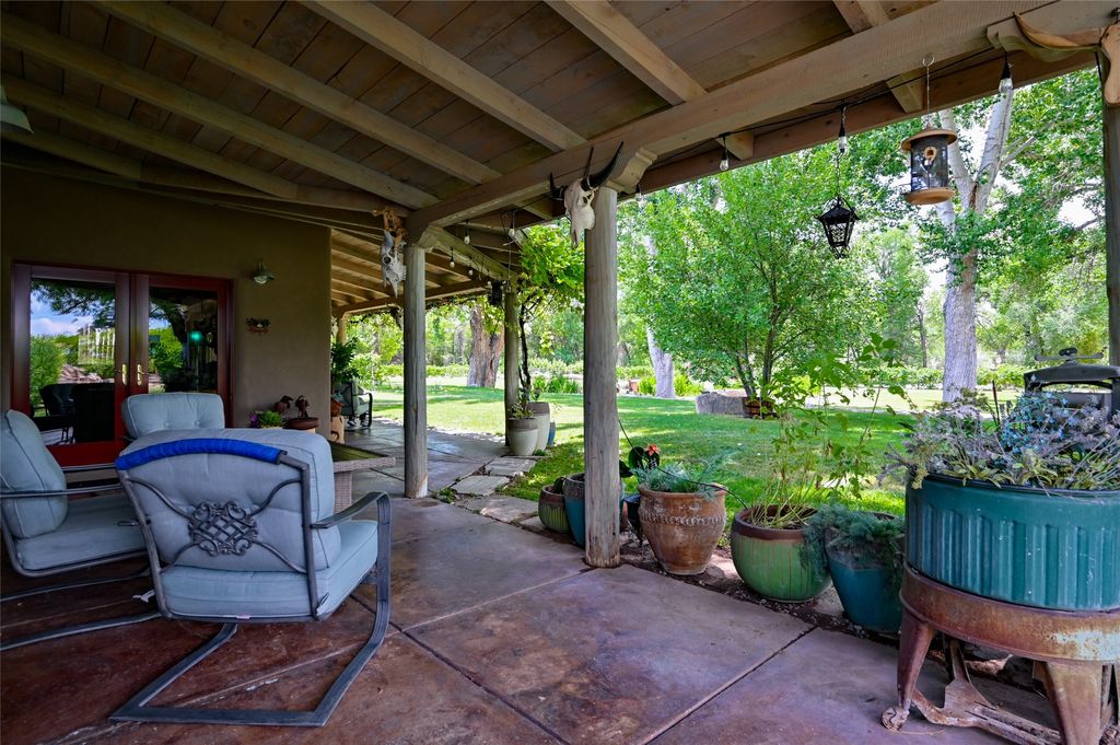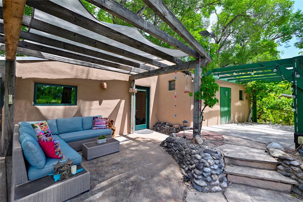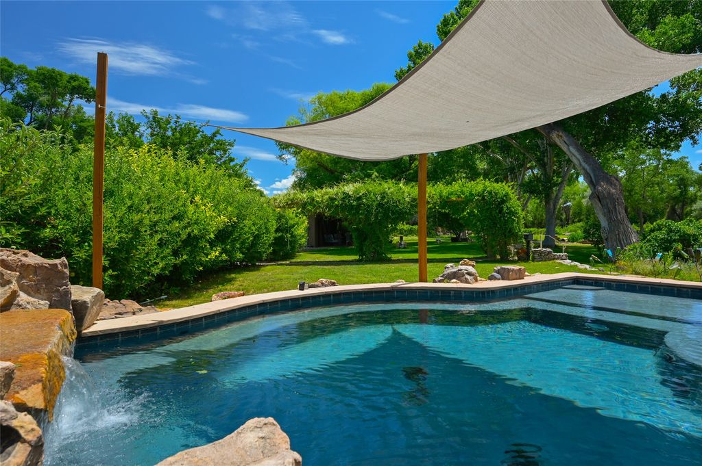 Heavenly 4.5-Acre Estate in Pojoaque Valley - Vineyard, Casitas & More! Rare opportunity to own one of the most spectacular estates in the Pojoaque Valley, just minutes from downtown Santa Fe. This 4.5-acre property offers a serene retreat with 3 acre-feet of domestic water rights and 6.91 acre-feet of irrigation water rights, supporting both vineyard expansion and lush garden potential. The grounds are also home to mature apple, plum, pear, and cherry trees. The main residence is a classic adobe featuring 4 bedrooms and 2 bathrooms (ESTIMATED SQ. FT. 2300), with traditional New Mexican details including vigas, brick floors, two rock fireplaces, and a spacious portal perfect for outdoor living. Three additional casitas (ESTIMATED TOTAL 3100 SQ. FT. COMBINED) provide excellent flexibility: 1BR/1BA Casita - 800 sq. ft. 2BR/2BA Casita - 811 sq. ft. 1BR / 1BA Casita ready for your personal touch and renovation vision - 1500 sq. ft. Ideal for short-term rentals, guest stays, or multi-generational living. Outdoor amenities offer exceptional entertainment and relaxation opportunities: 25-person hot tub/pool Firepit lounge area Outdoor bathrooms and showers Brick pizza ovens Wine cellar 2 RV hookups A large metal barn offers generous storage or potential for workshop, studio, or event use. Whether you dream of running a boutique vineyard, hosting retreats, or simply living in peaceful luxury, this unique Pojoaque Valley estate delivers charm, privacy, and unlimited potential.