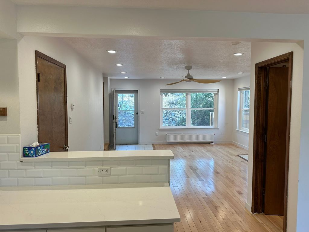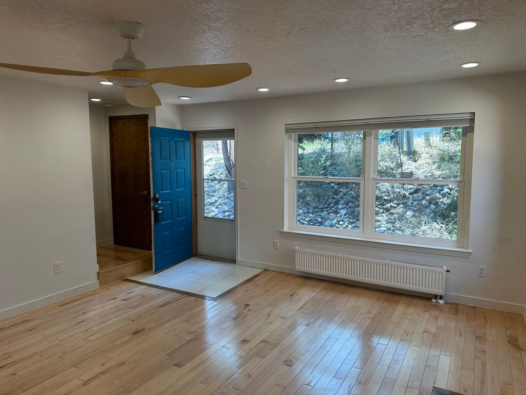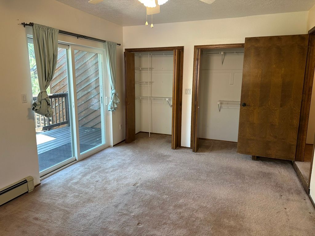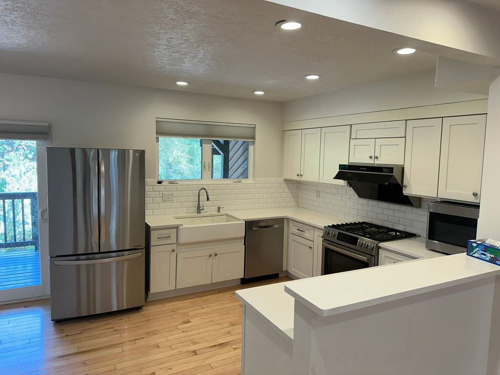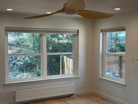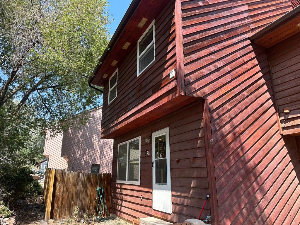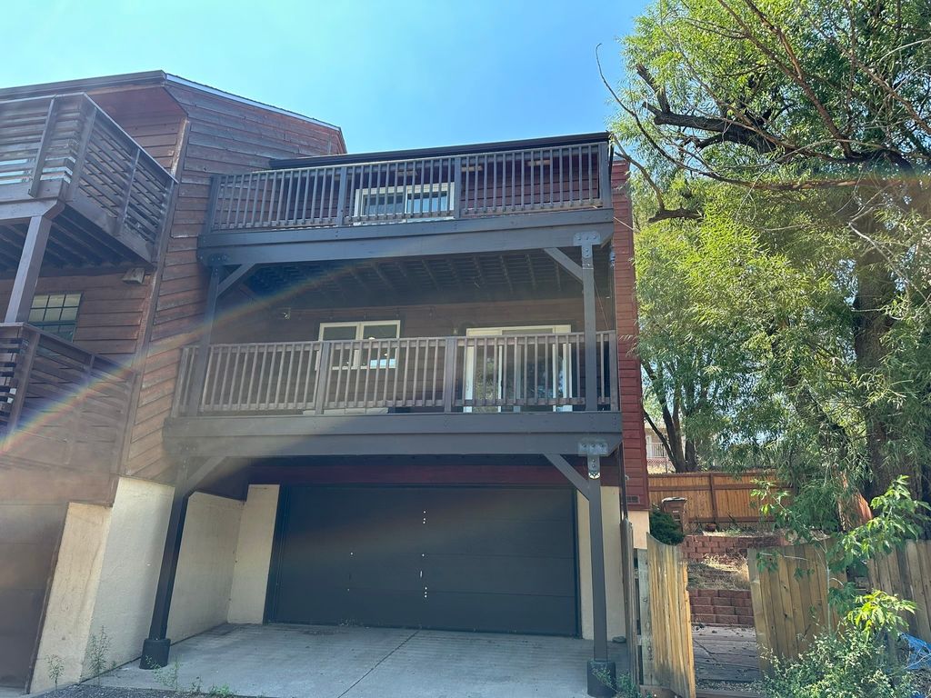 Tucked into a quiet pocket of ponderosa pines, this sweet end-unit townhome is full of personality and thoughtful updates. Inside, sunshine fills the main level, highlighting the beautiful maple hardwood floors! The kitchen is the star of the show, featuring quartz countertops, custom cabinets, a farmhouse-style sink, solid wood pantry, subway tile backsplash, sleek Bosch appliances and a modern, powerful new vent hood, the kitchen is built for functionality.. You'll also find a cozy fireplace with a tile border (freshly cleaned), plus stylish European-style Bosch-Buderus radiators for comfy heat. The main level includes a high-efficiency boiler, water heater and fresh paint throughout. The second level has one inviting bedroom along with a primary bedroom with en suite. Both bedrooms offer soft carpeting, generous closets, and great natural light. A full bathroom services the guest bedroom on this floor. The third level has another bedroom that could be used as an office, craft room, or additional storage. The lowest level offers a handy mudroom right off the two-car garage - complete with a utility sink, extra lighting, and direct access to the backyard. Step outside and enjoy the terraced yard - complete with sandstone patio. It's a lovely spot for a morning coffee, perfect for a little gardening, playing, or just enjoying nature. The exterior is in great shape too, with a newer roof, updated decks, aluminum gutters, and insulated glass doors and windows to keep things cozy year-round. With plenty of storage, and a great layout, this cheerful townhome offers an easygoing lifestyle in a lovely natural setting.