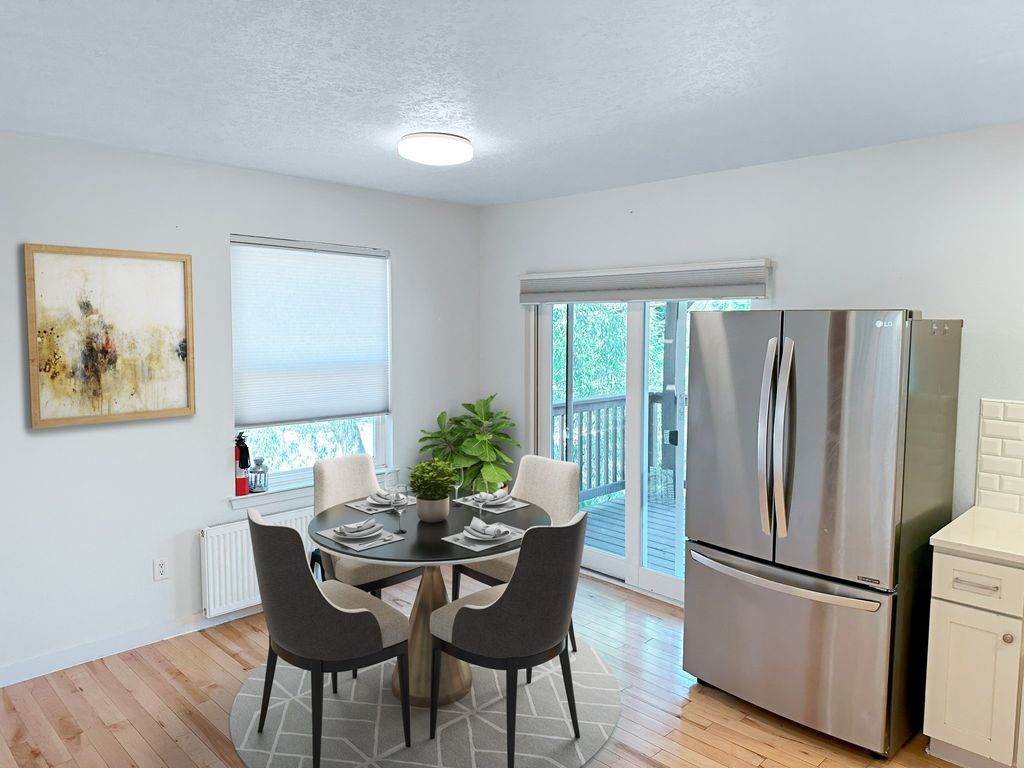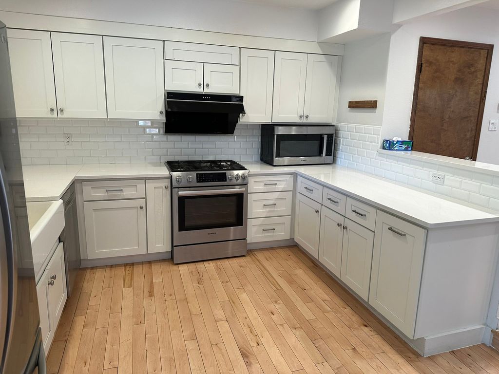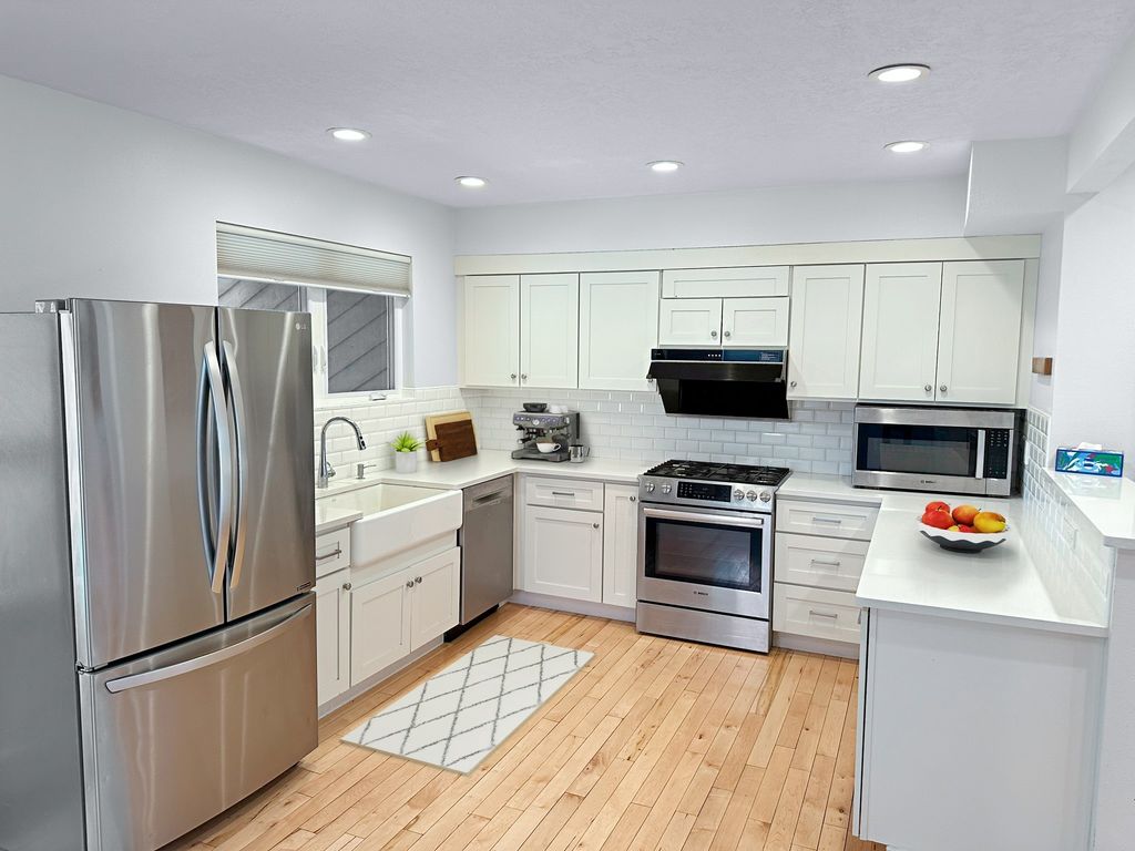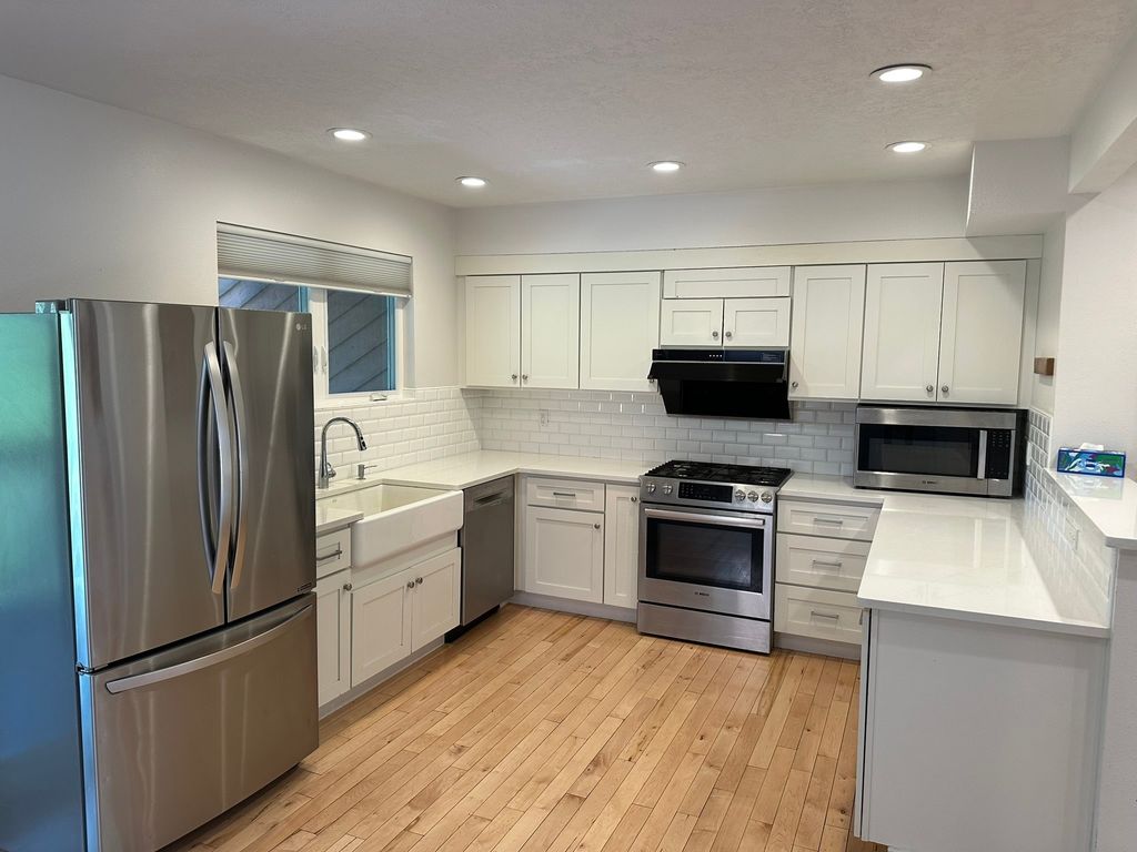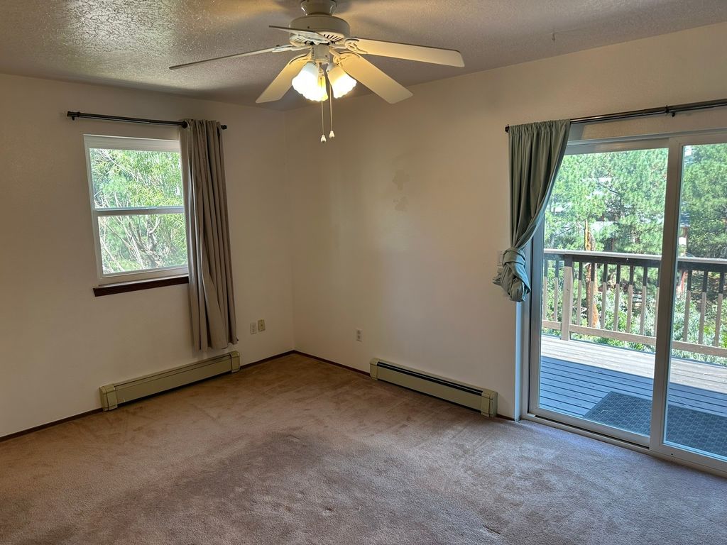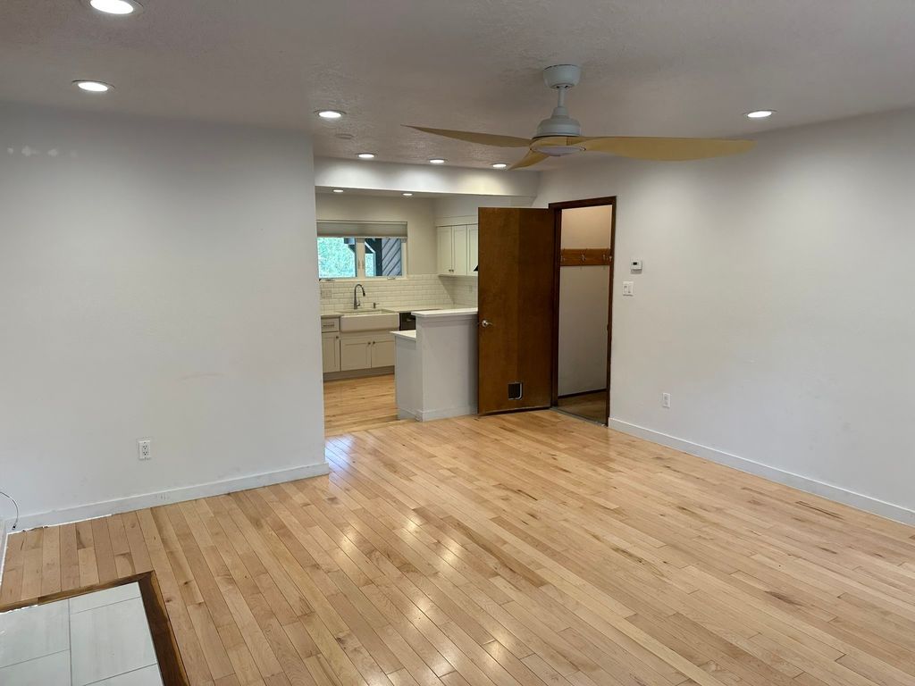Tucked into a quiet pocket of ponderosa pines, this sweet end-unit townhome is full of personality and thoughtful updates. Inside, sunshine fills the main level, highlighting the beautiful maple hardwood floors! The kitchen is the star of the show, featuring quartz countertops, custom cabinets, a farmhouse-style sink, solid wood pantry, subway tile backsplash, sleek Bosch appliances and a modern, powerful new vent hood, the kitchen is built for functionality.. You'll also find a cozy fireplace with a tile border (freshly cleaned), plus stylish European-style Bosch-Buderus radiators for comfy heat. The main level includes a high-efficiency boiler, water heater and fresh paint throughout. The second level has one inviting bedroom along with a primary bedroom with en suite. Both bedrooms offer soft carpeting, generous closets, and great natural light. A full bathroom services the guest bedroom on this floor. The third level has another bedroom that could be used as an office, craft room, or additional storage. The lowest level offers a handy mudroom right off the two-car garage - complete with a utility sink, extra lighting, and direct access to the backyard. Step outside and enjoy the terraced yard - complete with sandstone patio. It's a lovely spot for a morning coffee, perfect for a little gardening, playing, or just enjoying nature. The exterior is in great shape too, with a newer roof, updated decks, aluminum gutters, and insulated glass doors and windows to keep things cozy year-round. With plenty of storage, and a great layout, this cheerful townhome offers an easygoing lifestyle in a lovely natural setting.